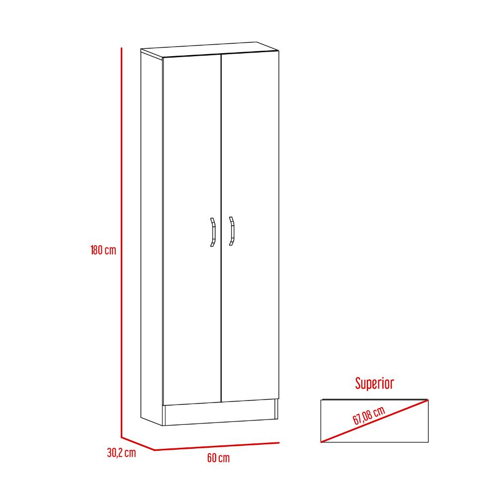 Alacena Multiusos, con 2 puertas con manija metálicas y cinco entrepaños.