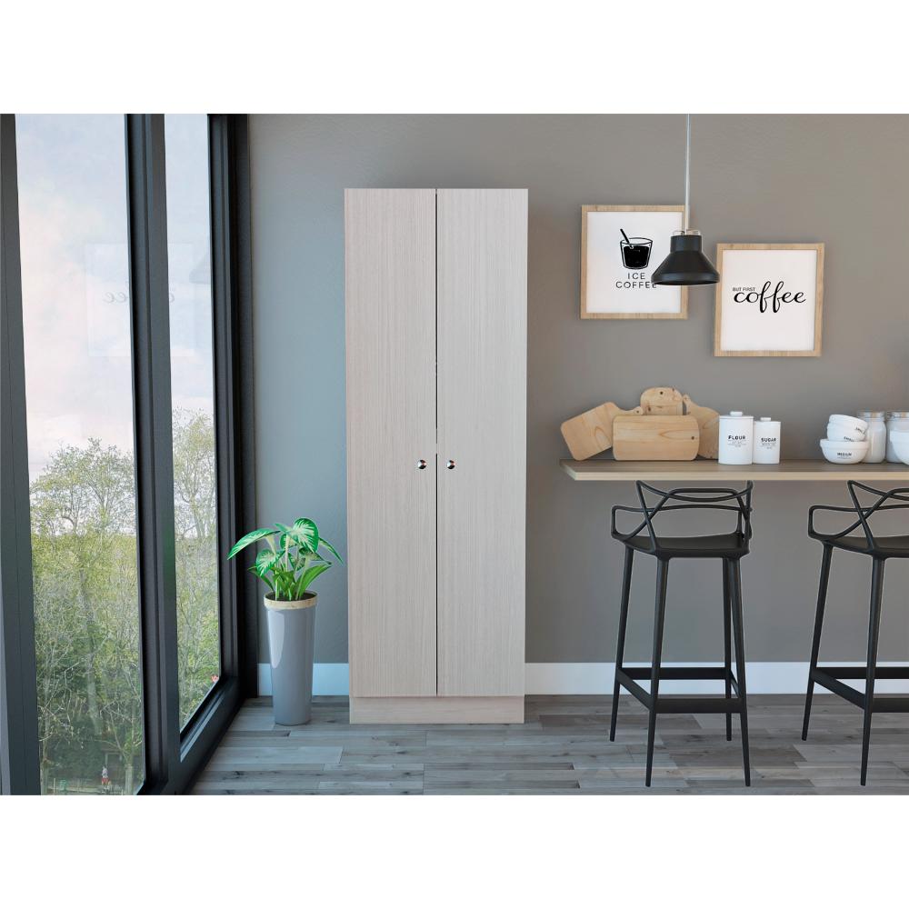 Alacena Multiusos, con 4 entrepaños, con amplios espacios para almacenamiento, dos puertas abatibles con botones metalicos.