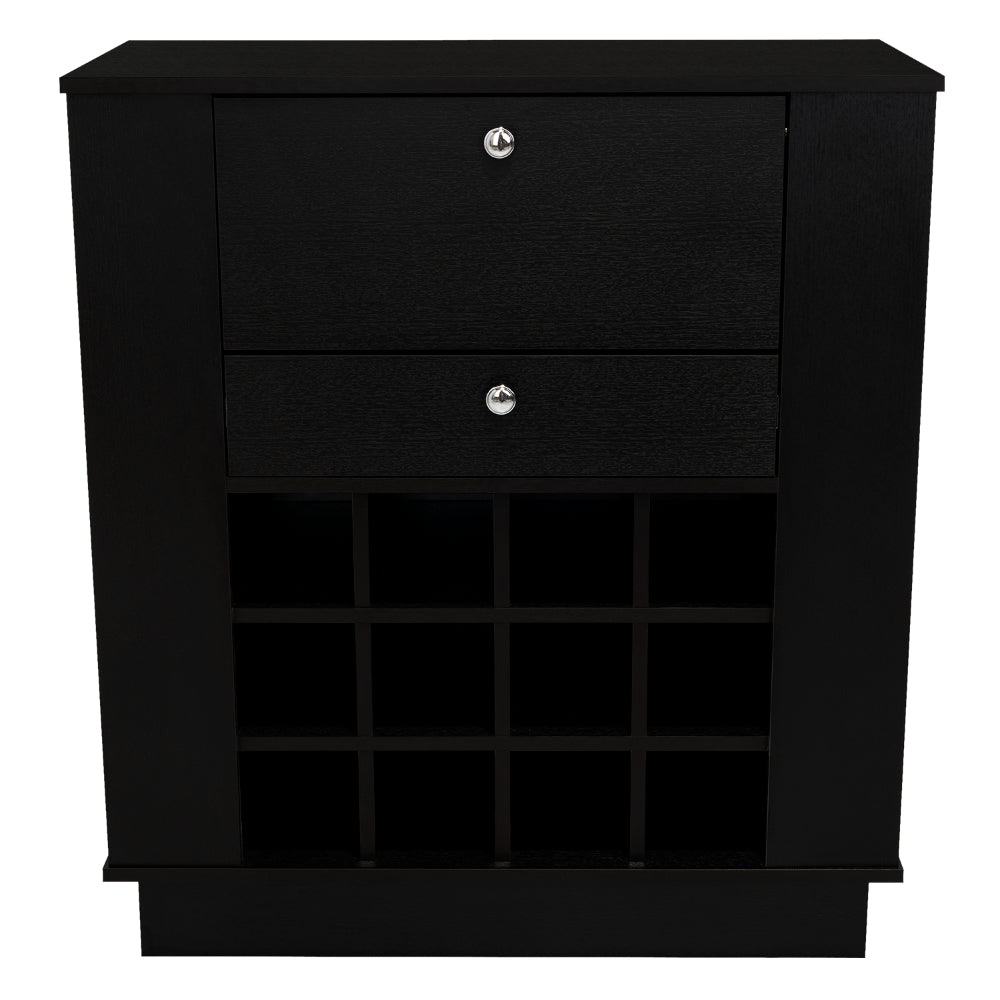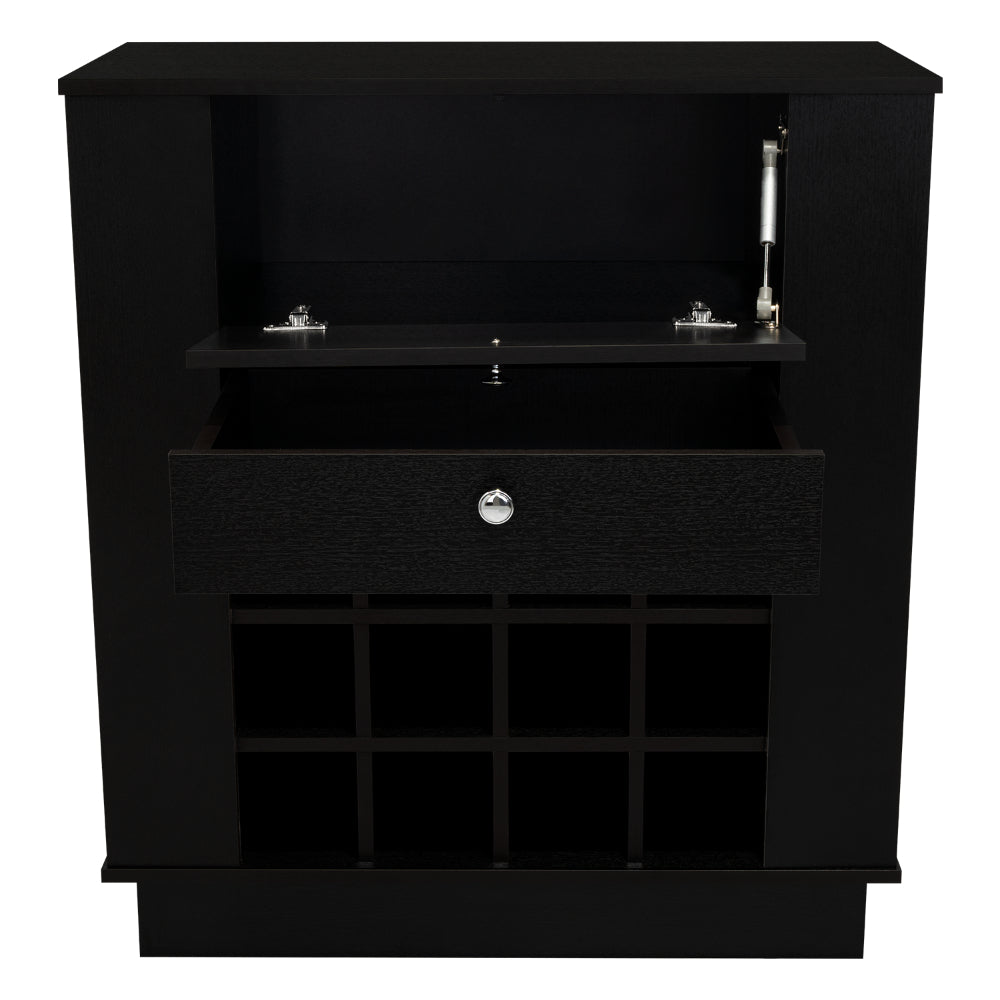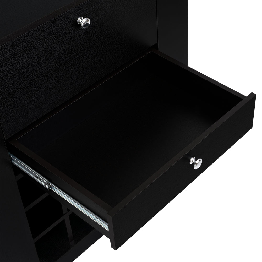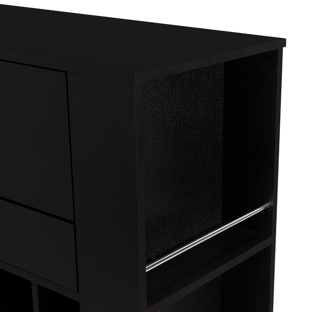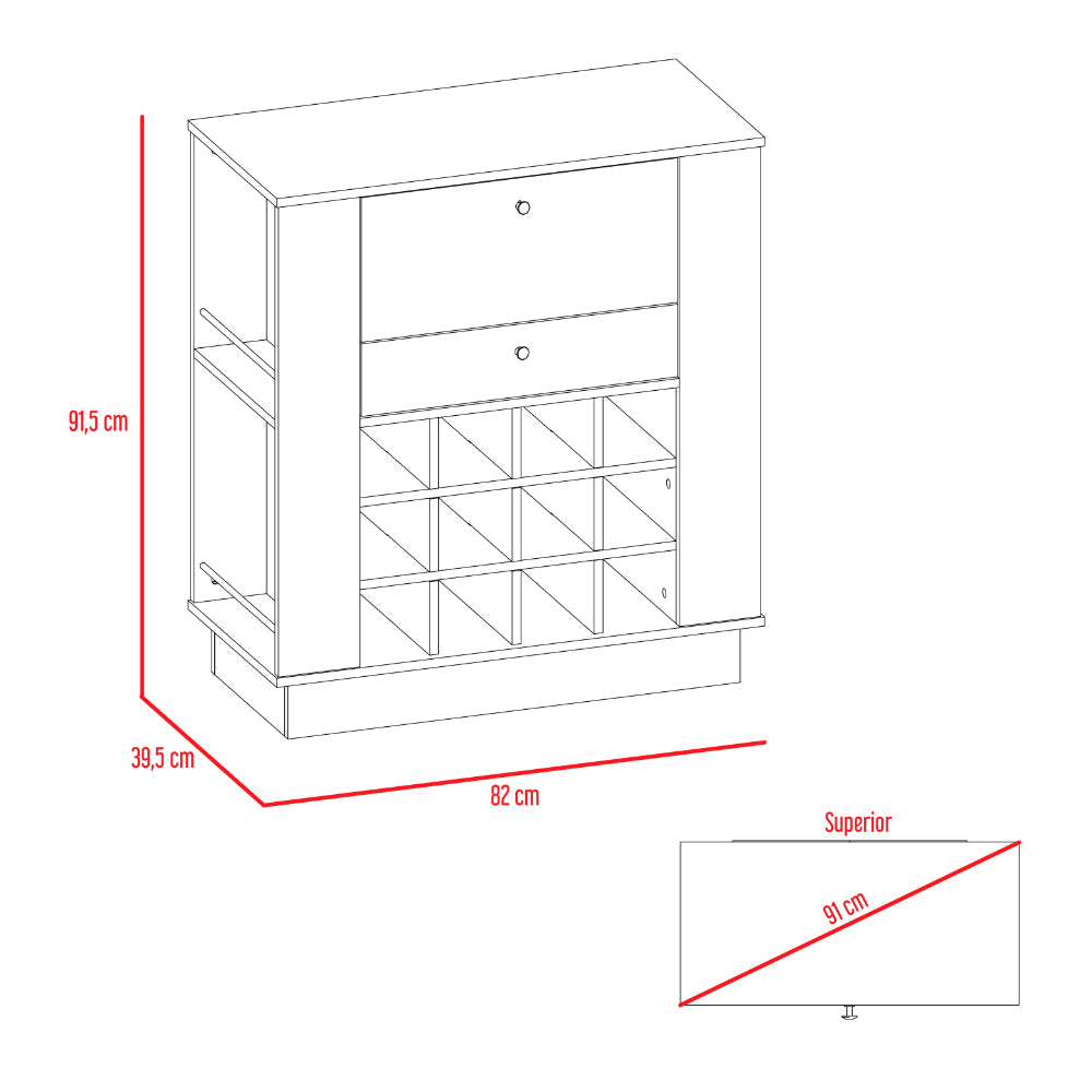 Bar, con diseño multifuncional mesa superior para servir, espacio para organizar botellas de vino u otros licores, cajones deslizables con correderas metálicas, entrepaños laterales para ubicar botellas de licos u otros elementos para bar.