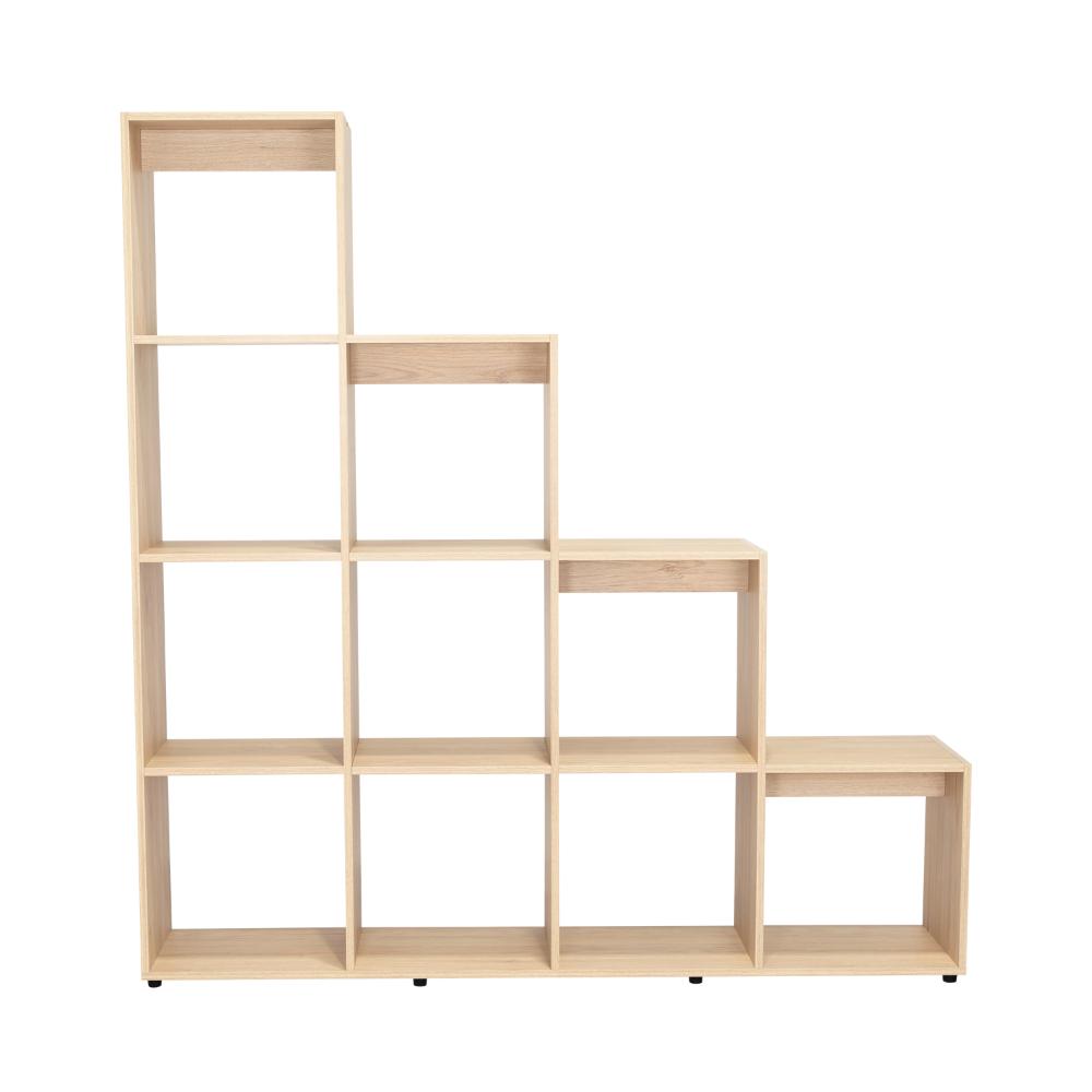 Biblioteca Escalera Ascher, Beige, con Variedad de Espacios Para Libros y Artículos Decorativos