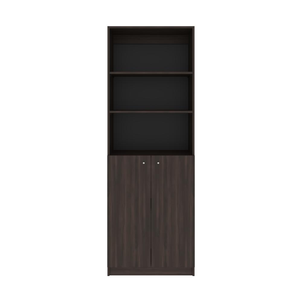 Biblioteca, con espacio para libros y objetos decorativos, dos puertas abatibles, de fácil armado e instalación.