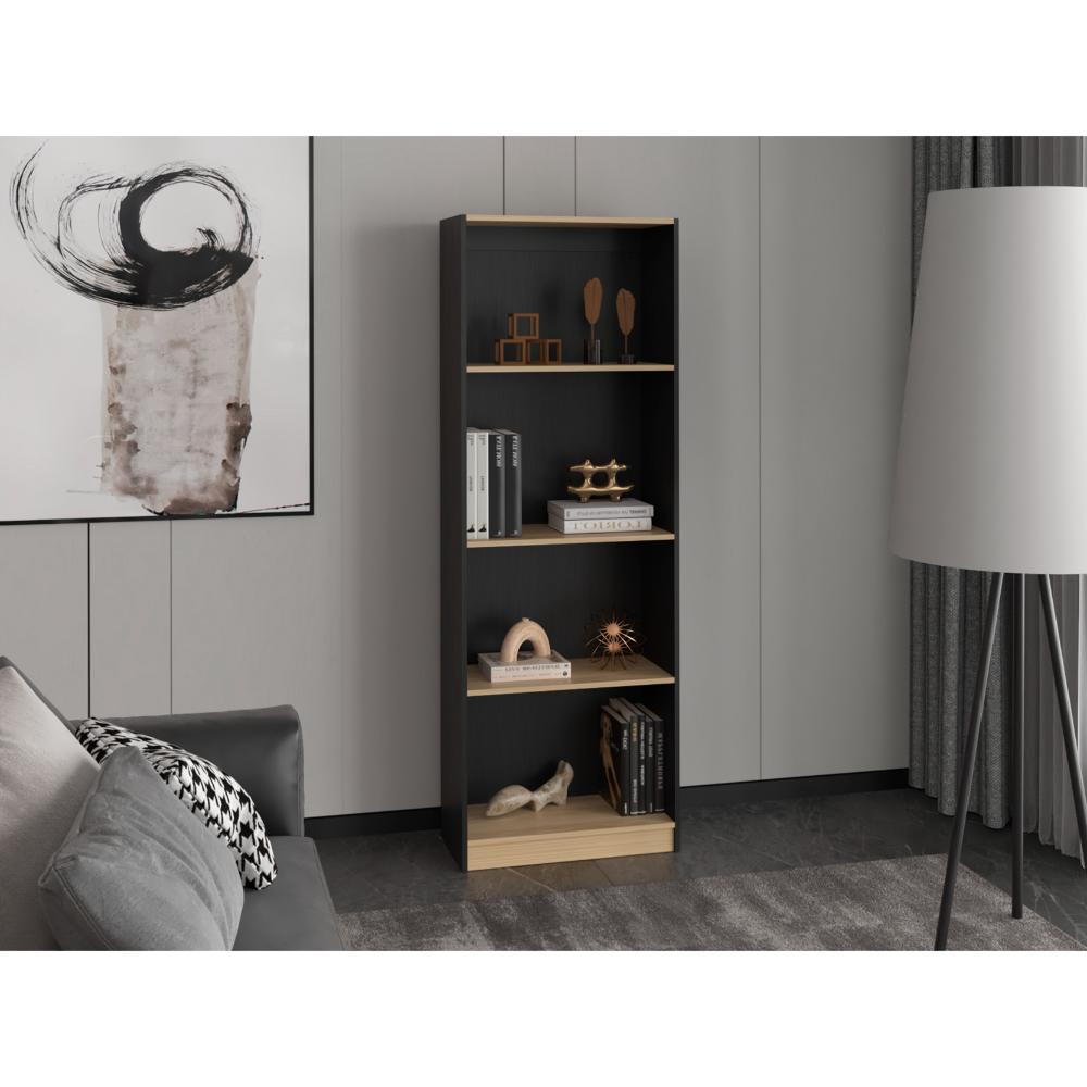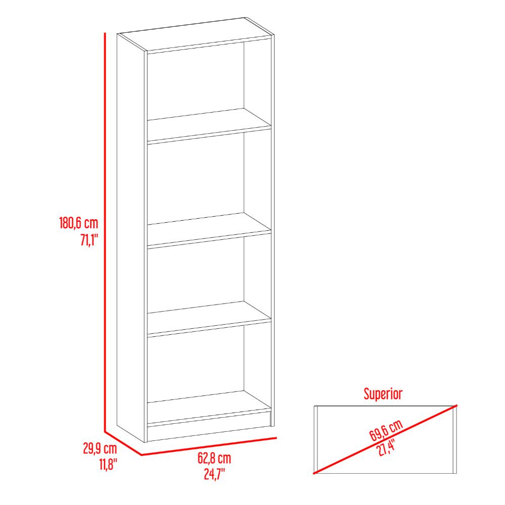 Biblioteca, con cuatro entrepaños para ubicar libros y elementos decorativos.