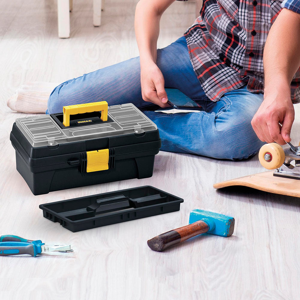 Caja Herramientas 14" con Tapa Organizadora Cerradura Plástica Negro