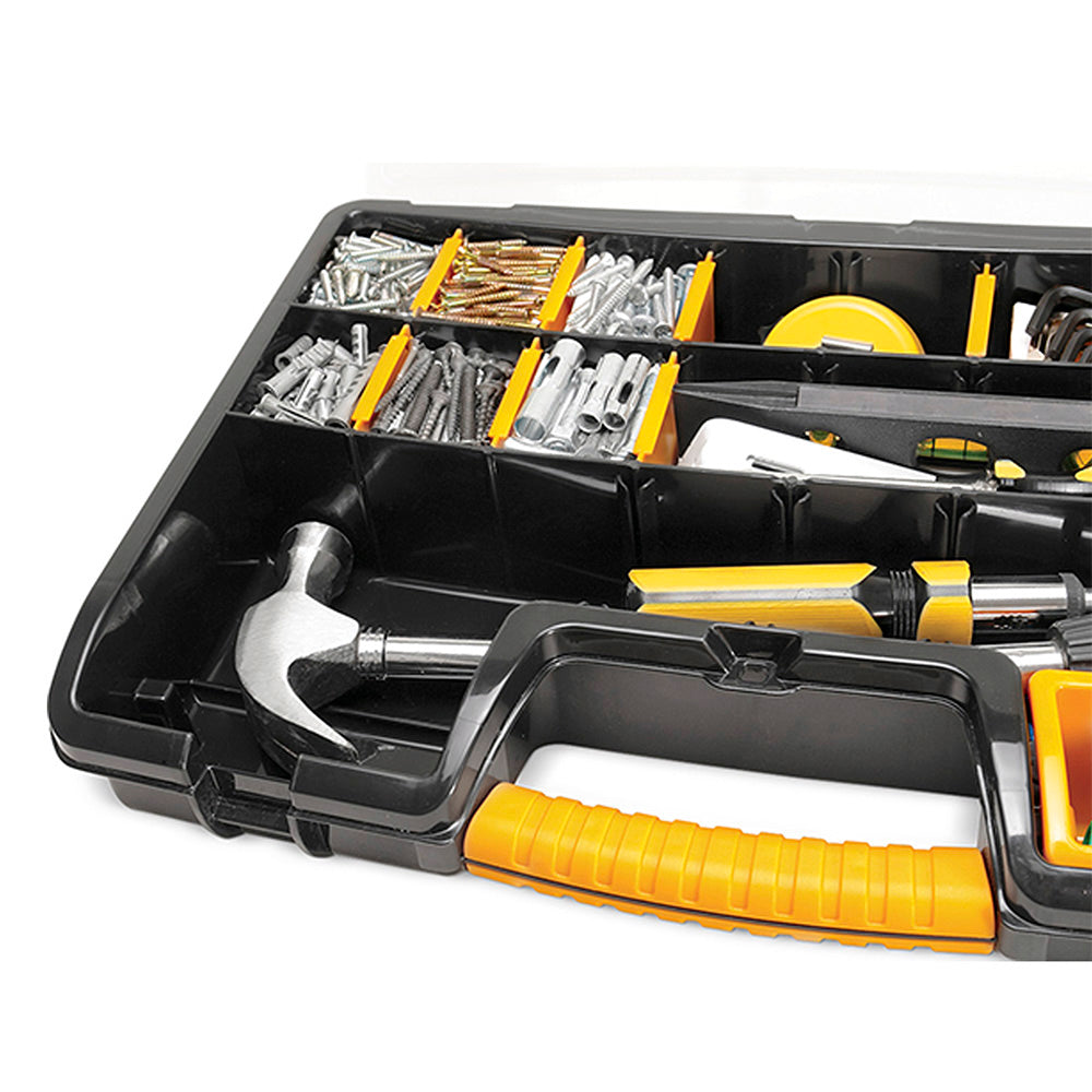 Gran Espacio de Almacenamiento: Con sus 460 milímetros de tamaño, esta caja ofrece espacio suficiente para guardar una amplia variedad de herramientas, piezas y accesorios de manera ordenada.