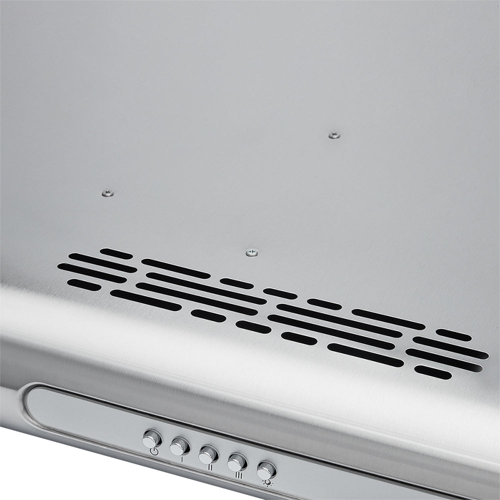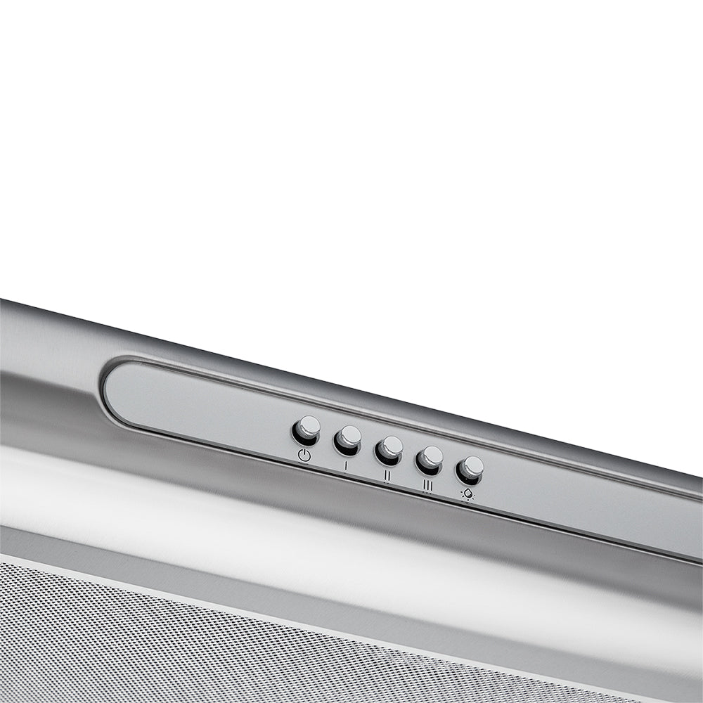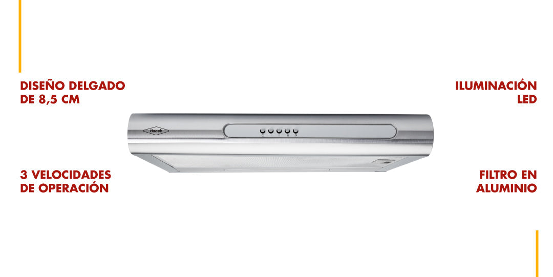 Campana Horizontal Inox de 60cm de ancho y con 3 niveles de operación. Diseño más delgado y liviano al tacto. Cuenta con filtro de aluminio atrapa grasas para disminuir la cantidad de grasa que se adhiere a la superficie de tu cocina y un filtro de carbón activado que te ayuda a minimizar los olores producidos durante los procesos de cocción. Su iluminación LED es de menor consumo energético y mayor duración. Producto Ecodiseñado que reduce el impacto ambiental en un 34%.