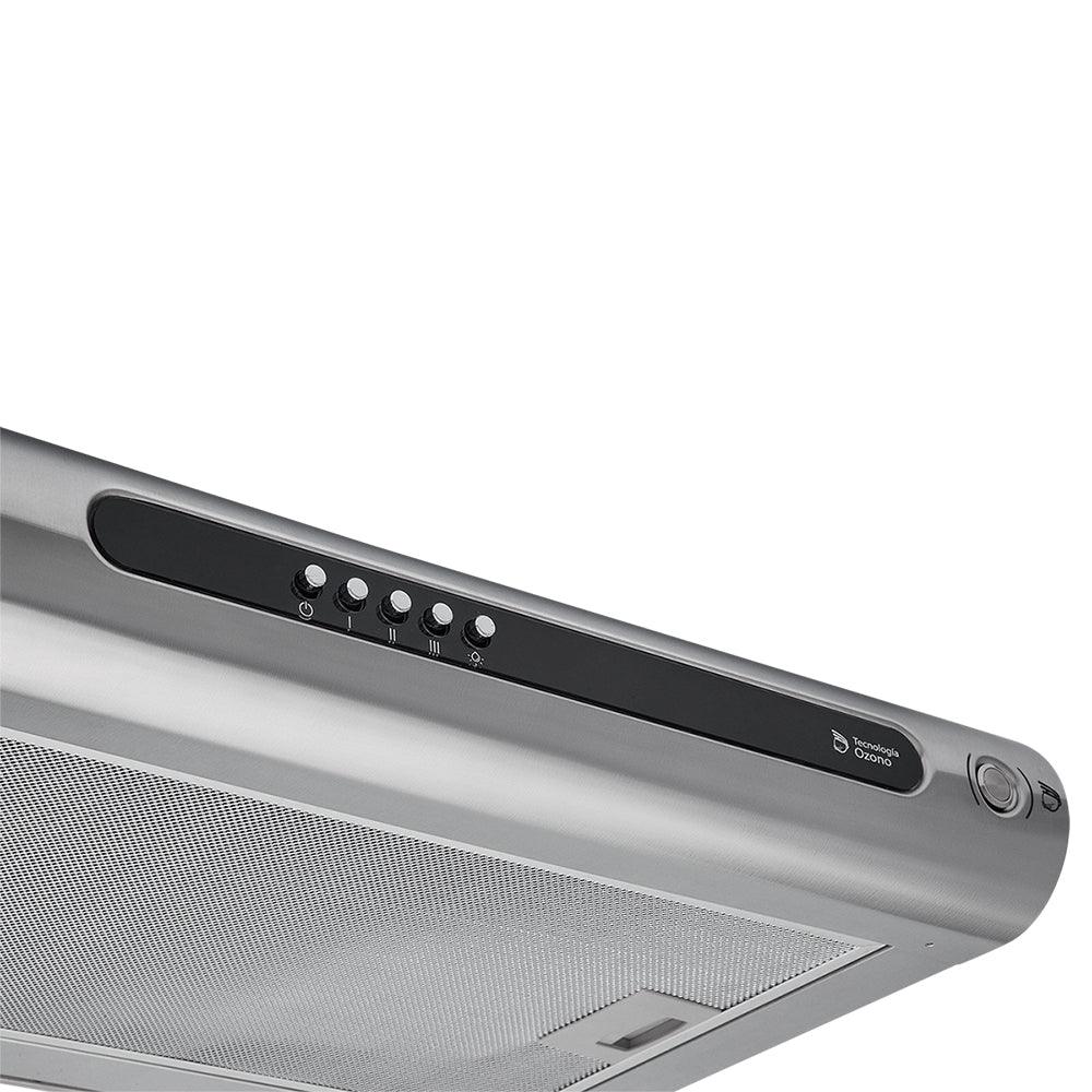 Campana Horizontal Inox Negra de 60cm de ancho y con 3 niveles de operación. Diseño más delgado y liviano al tacto. Cuenta con filtro de aluminio atrapa grasas para disminuir la cantidad de grasa que se adhiere a la superficie de tu cocina y un filtro de carbón activado que te ayuda a minimizar los olores producidos durante los procesos de cocción. Iluminación LED de menor consumo energético y mayor duración. Tecnología Ozono que permite disminuir la percepción de olores. Producto Ecodiseñado que reduce el impacto ambiental en un 34%.