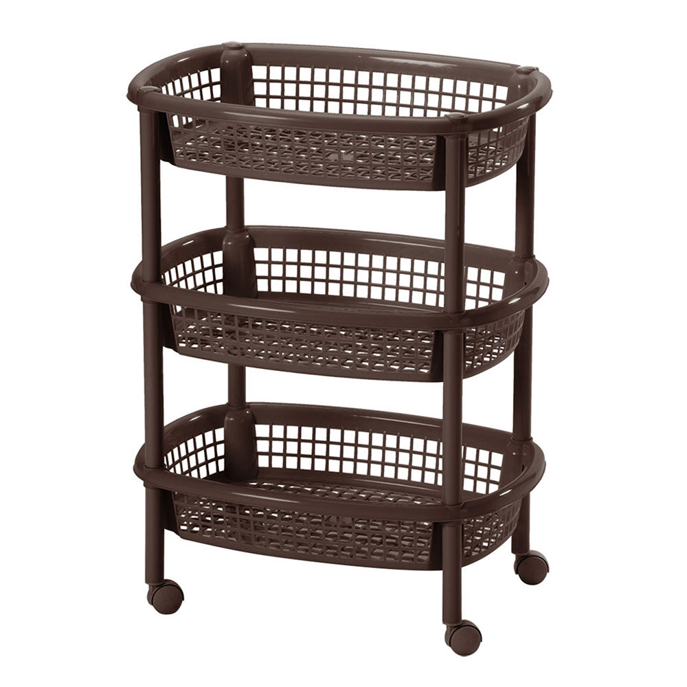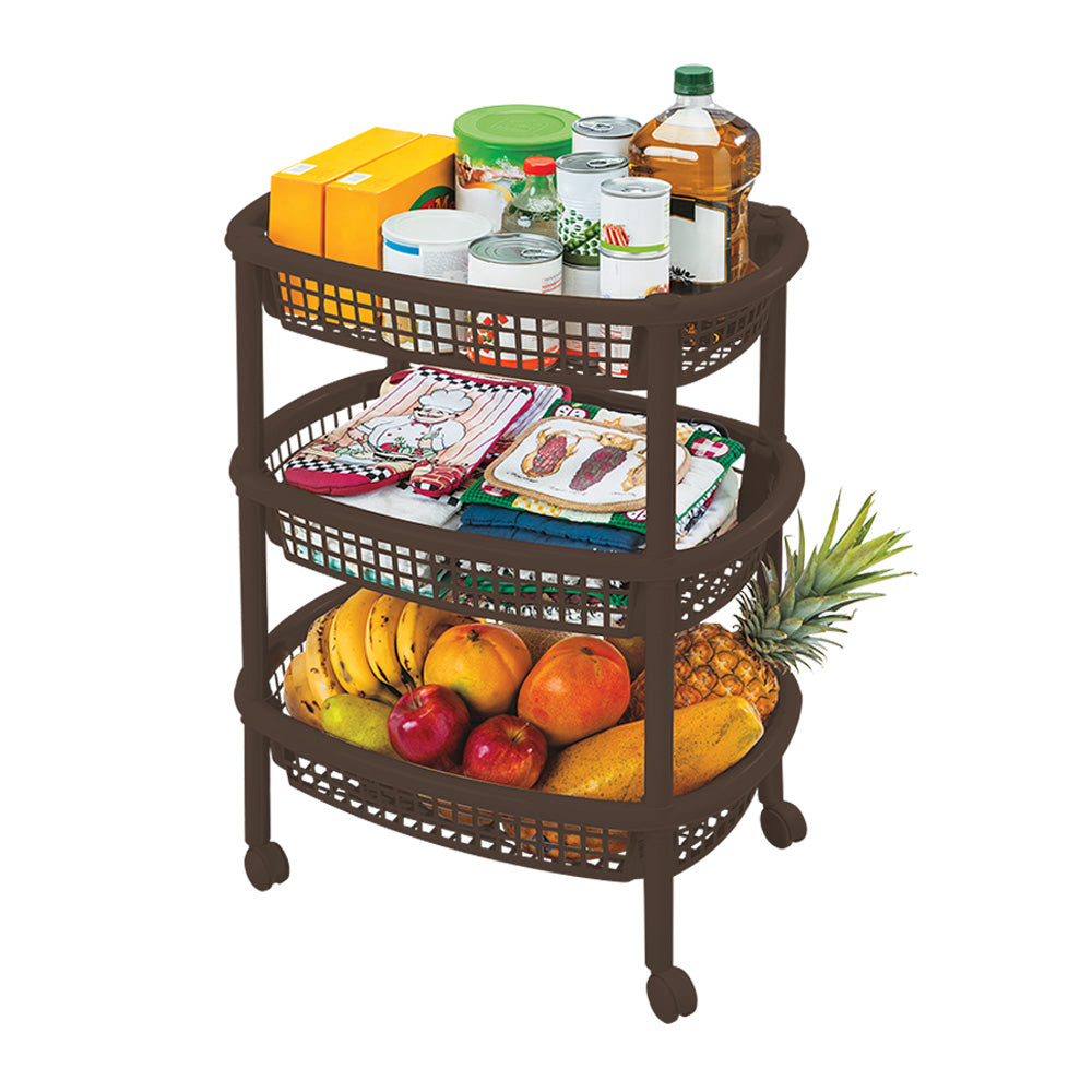 Canasta móvil ovalada que incluye tres niveles para organizar. Tiene rodachinas. Fácil de armar, no requiere herramientas. Ideal para organizar en casa todo tipo de objetos. No se oxida y es fácil de limpiar. Úsala en cocina, baños, cuartos de niños, como organizador auxiliar. Es tejida y permite oxigenar los productos o alimentos que guarde.