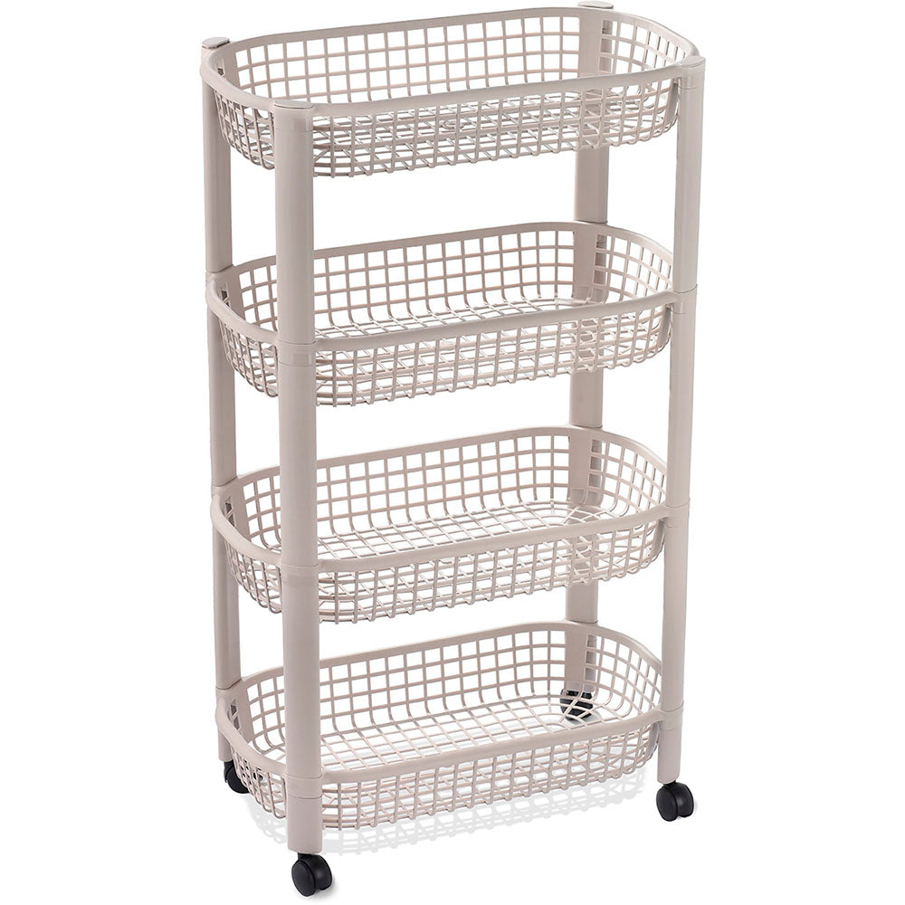 Canasta que incluye cuatro niveles para organizar. Tiene rodachinas. Fácil de armar, no requiere herramientas. Ideal para organizar en casa todo tipo de objetos. Úsala en cocina, baños, cuartos de niños, como organizador auxiliar.