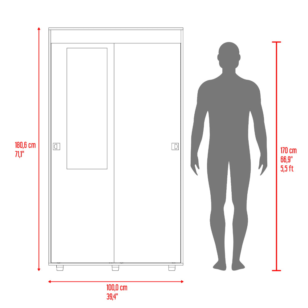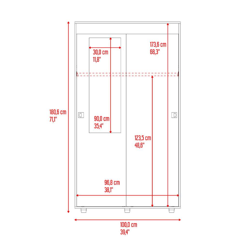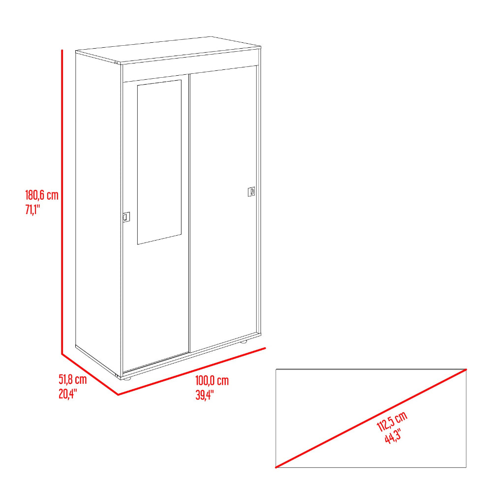 Closet, con dos puertas corredizas, un tubo para colgar ropa y amplios espacios de guardado. Incluye Espejo