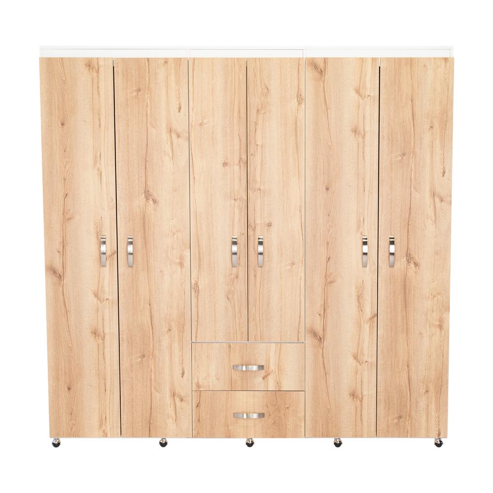 Closet Bariloche Bombay, Café Claro y Blanco Duqueza con Variedad de Entrepaños y Seis Puertas Abatibles