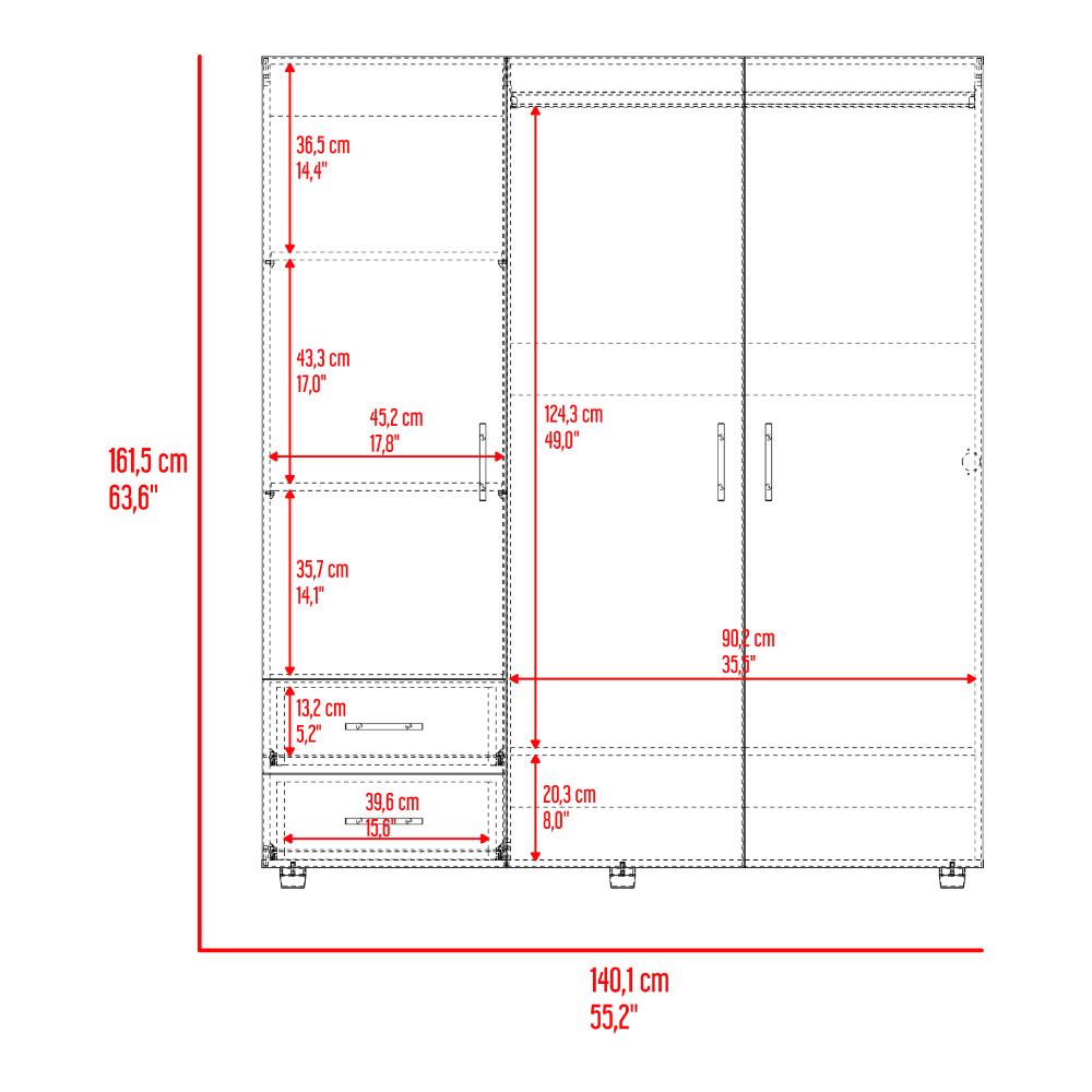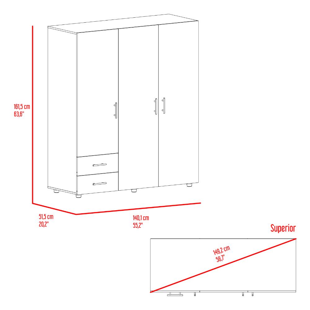 Closet Light, Beige, con Dos Cajones y Tres Puertas Batientes