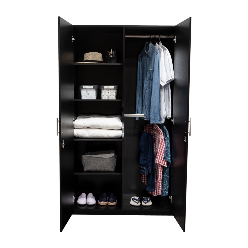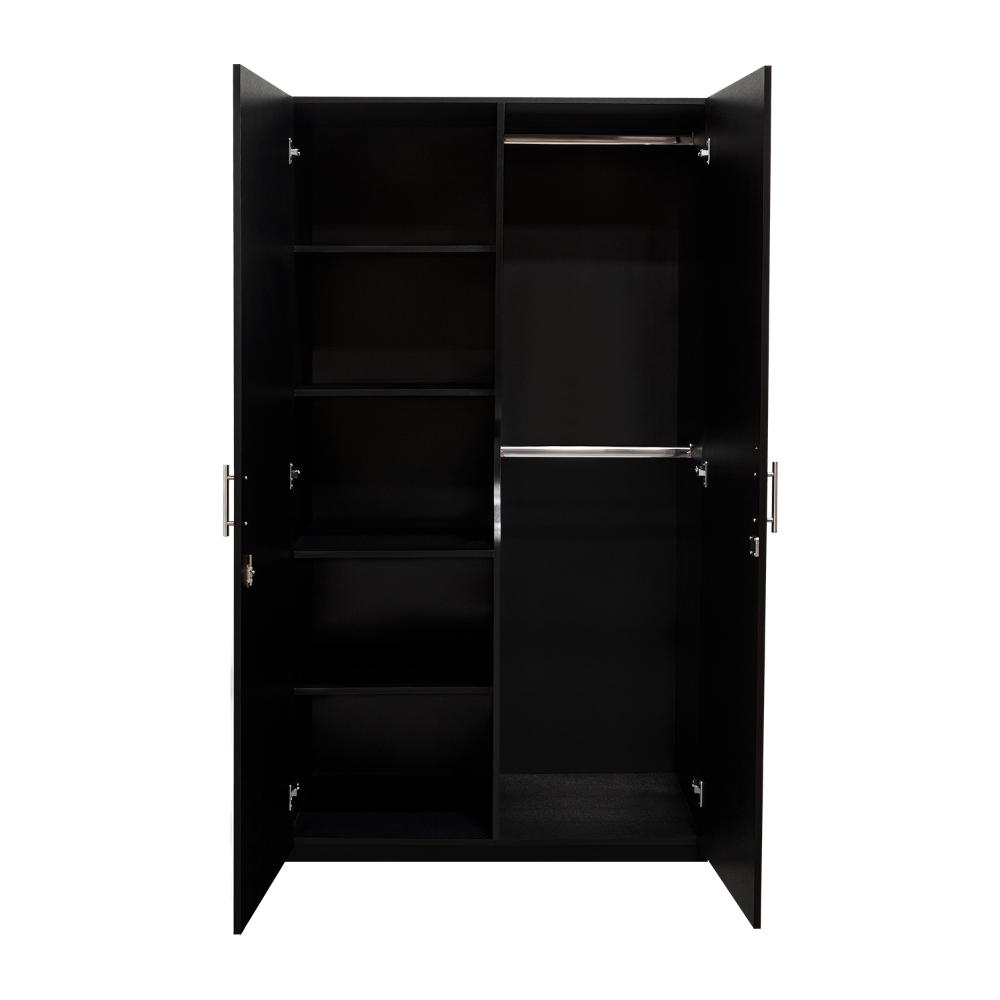 Closet, con cerradura, amplios espacios para guardar y organizar, dos turbos cromados para colgar ropa.