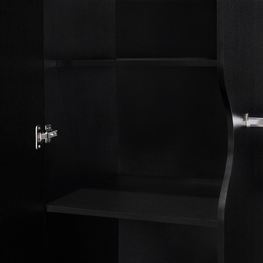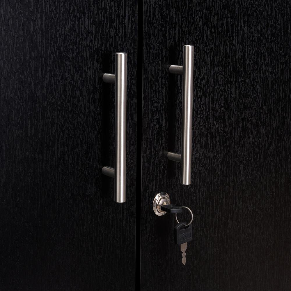 Elaborado en Madera aglomerada MDP, recubierta con láminas melamínicas de excelente calidad, en color Wengue.