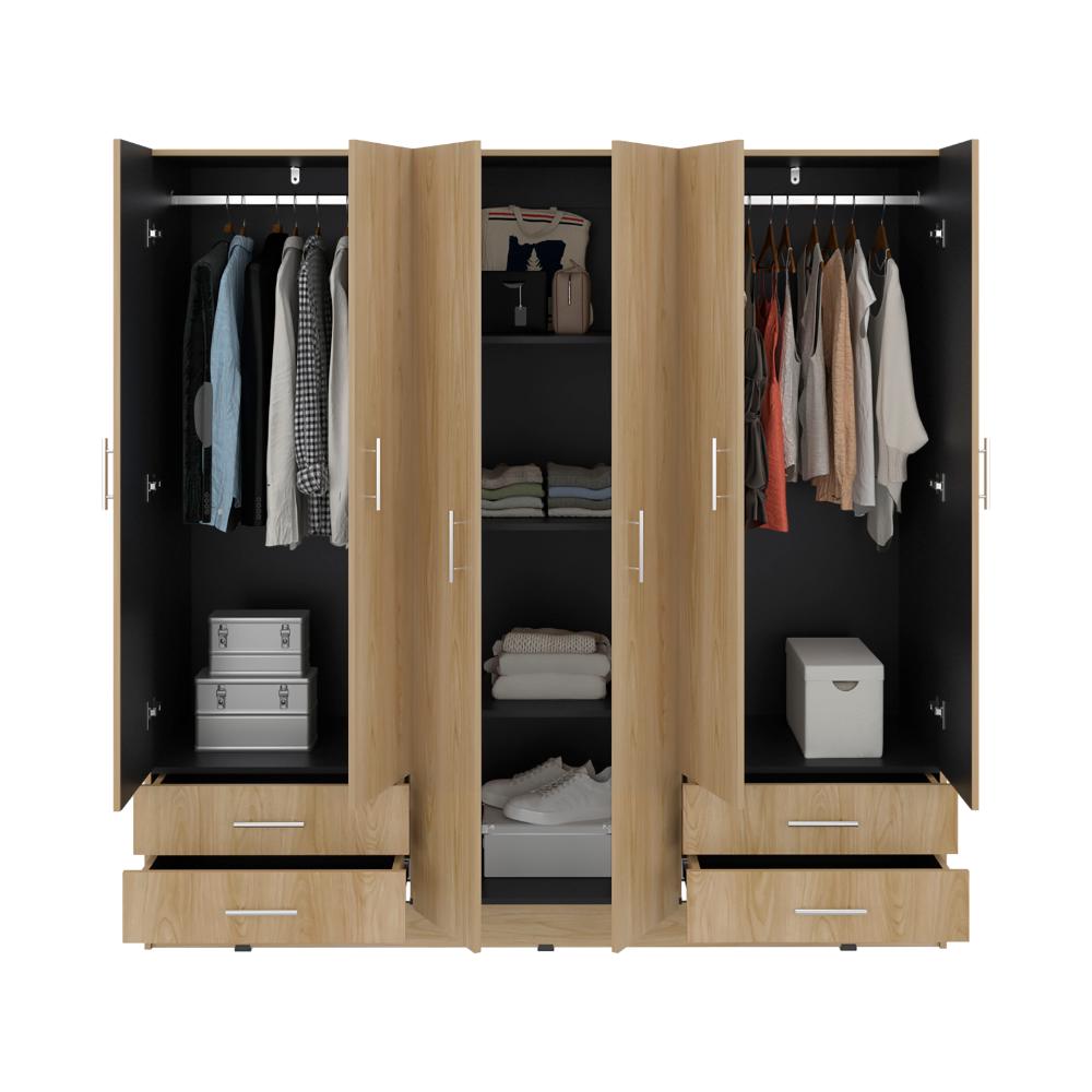 Closet, con amplios espacios y entrepaños para organizar, dos tubos de acero cromado para colgar, cuatro cajones organizadores multiusos cuatro puertas y de facil instalación.