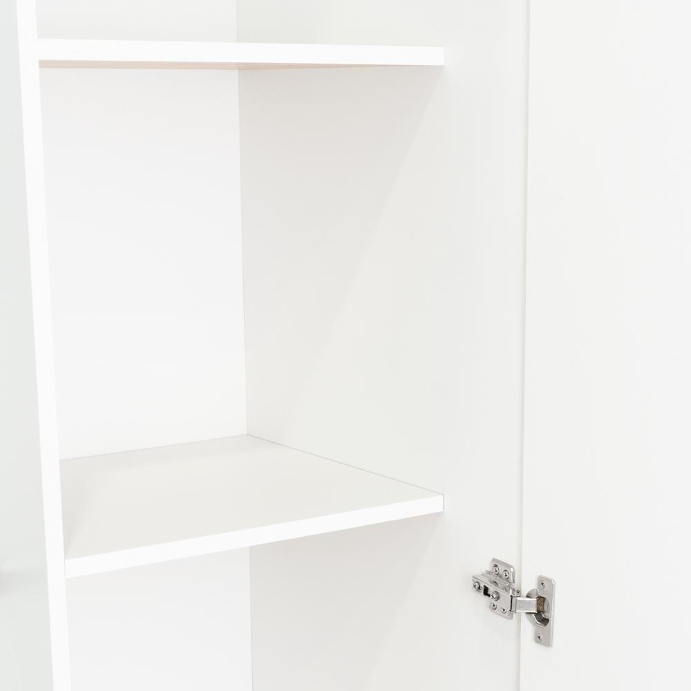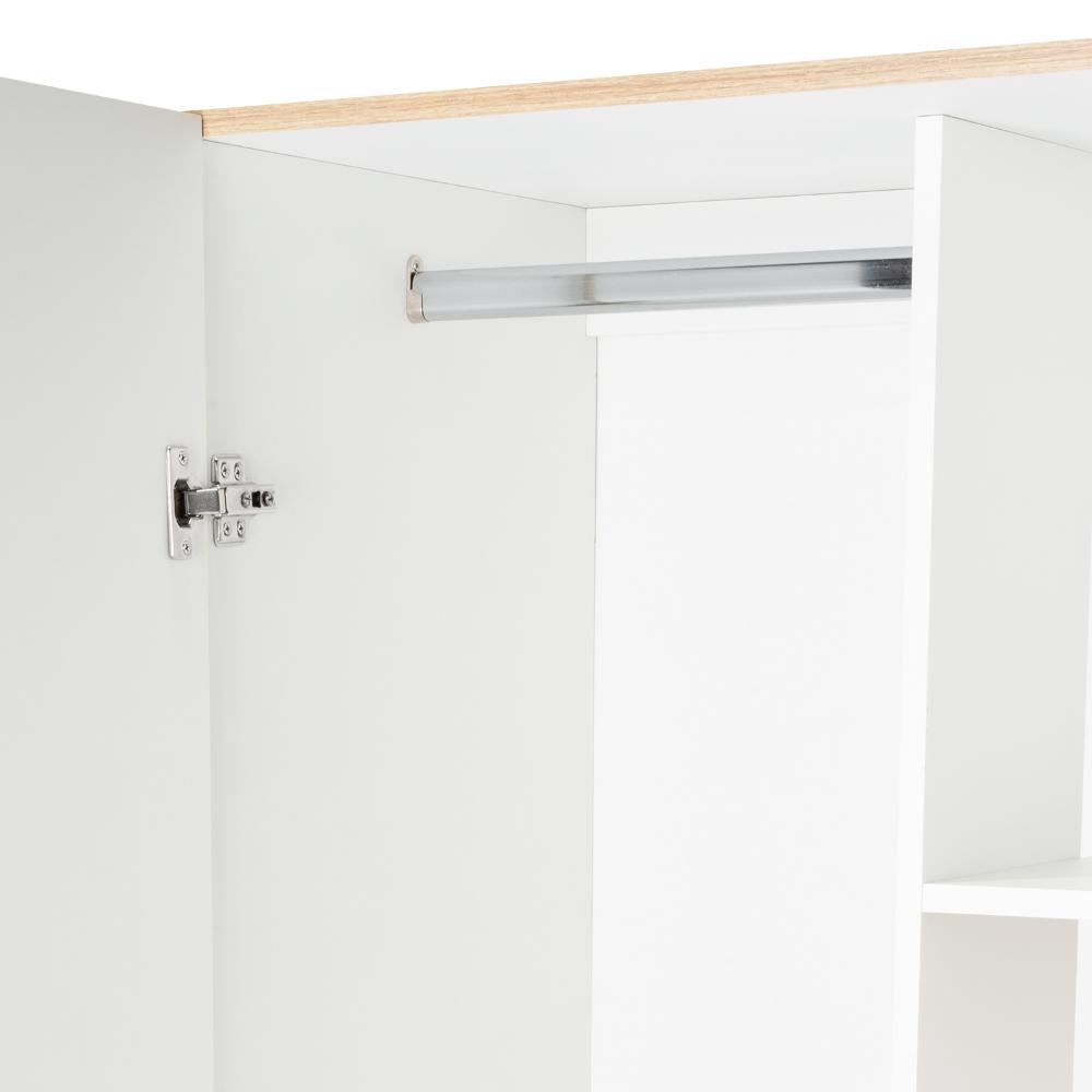 Closet, con 2 puertas abatibles, 2 tubos para colgar prendas, y 3 entrepaños para organizar.