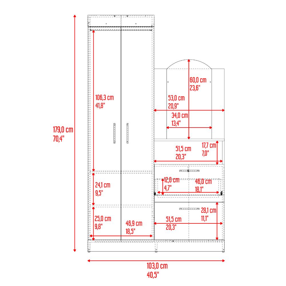 Closet Tocador Praga, Wengue, con diseño moderno incluye Espejo