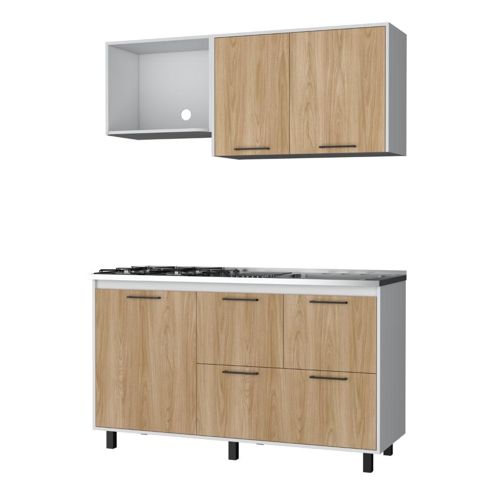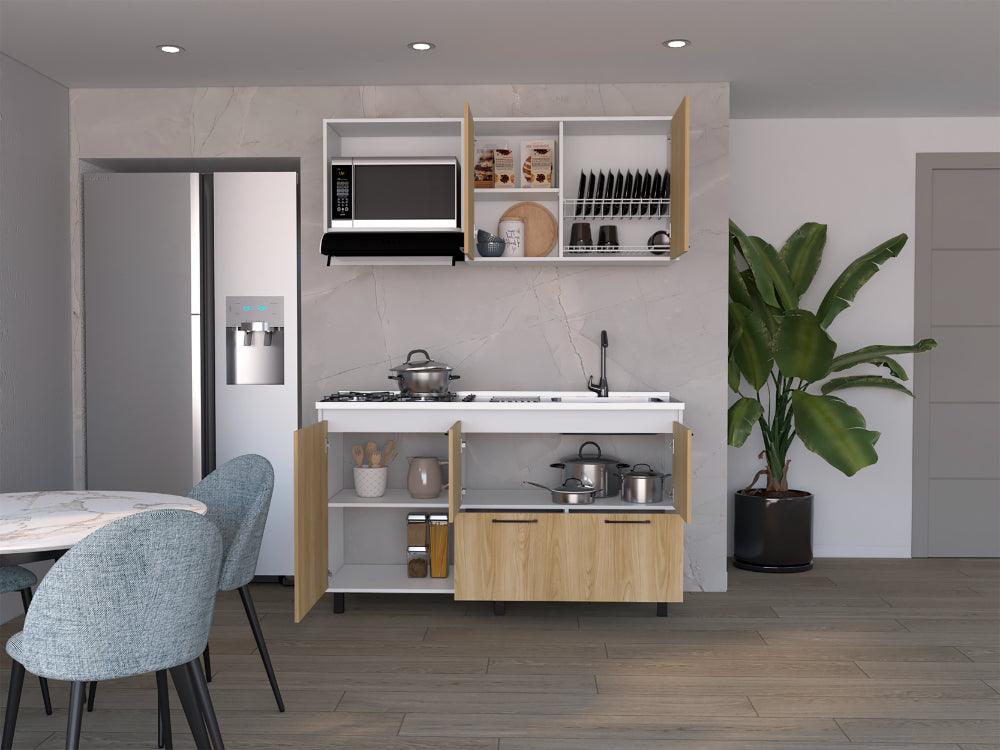 Cocina Integral Pacifica, Blanco Duqueza y Fresno Europeo, Incluye Mesón Derecho Socoda