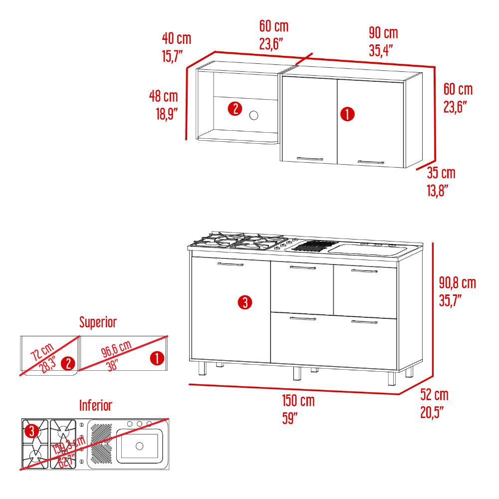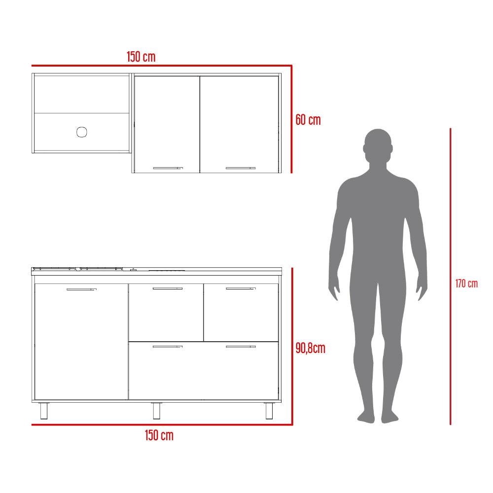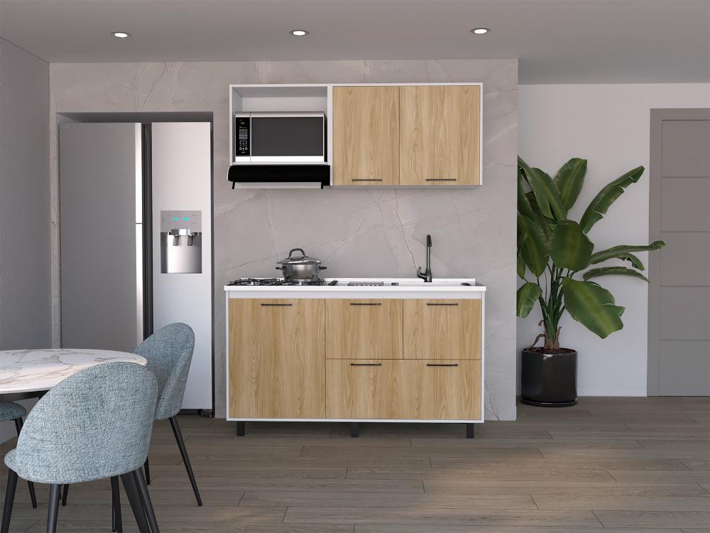 Cocina Integral, Con patas del mismo color de las manijas, Riel sencillo, incluye mesón Socoda Winner, locero y portavasos