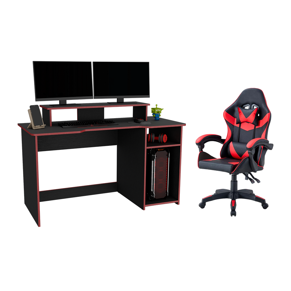 Combo para Oficina Gate, Rojo y Negro, Incluye Silla y Escritorio Gamer
