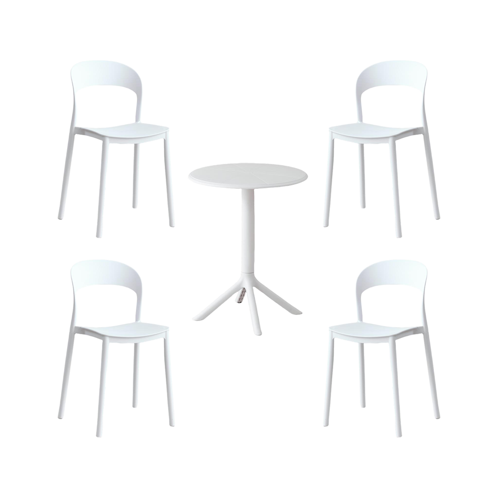 Combo Velaris, Incluye Mesa Redonda y 4 Sillas en Color Blanco