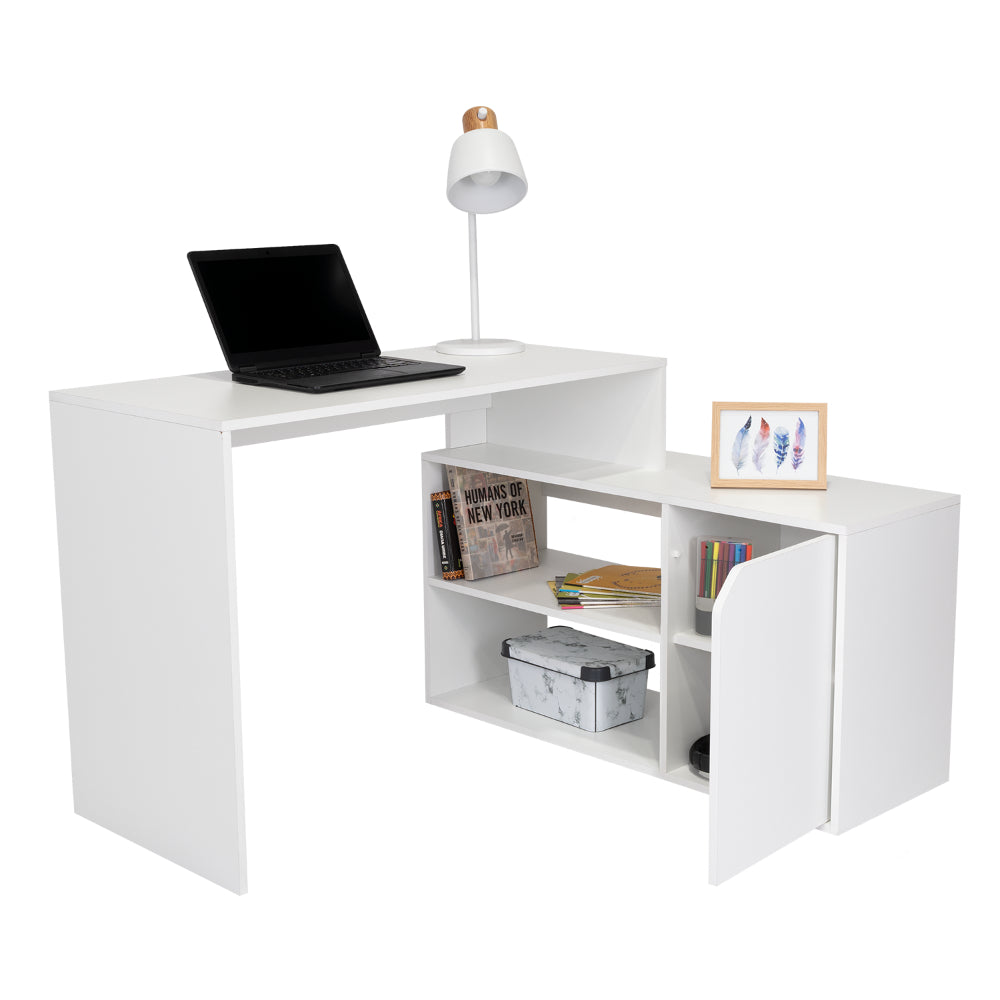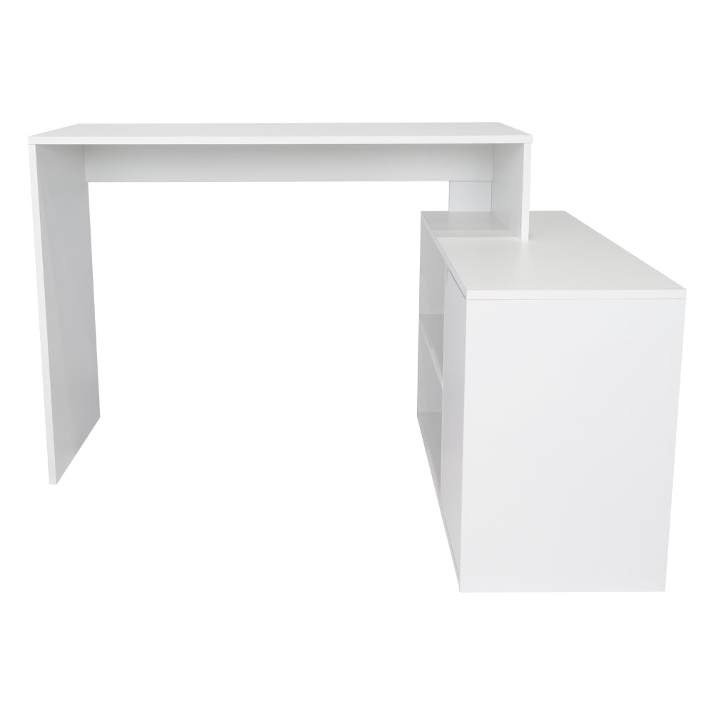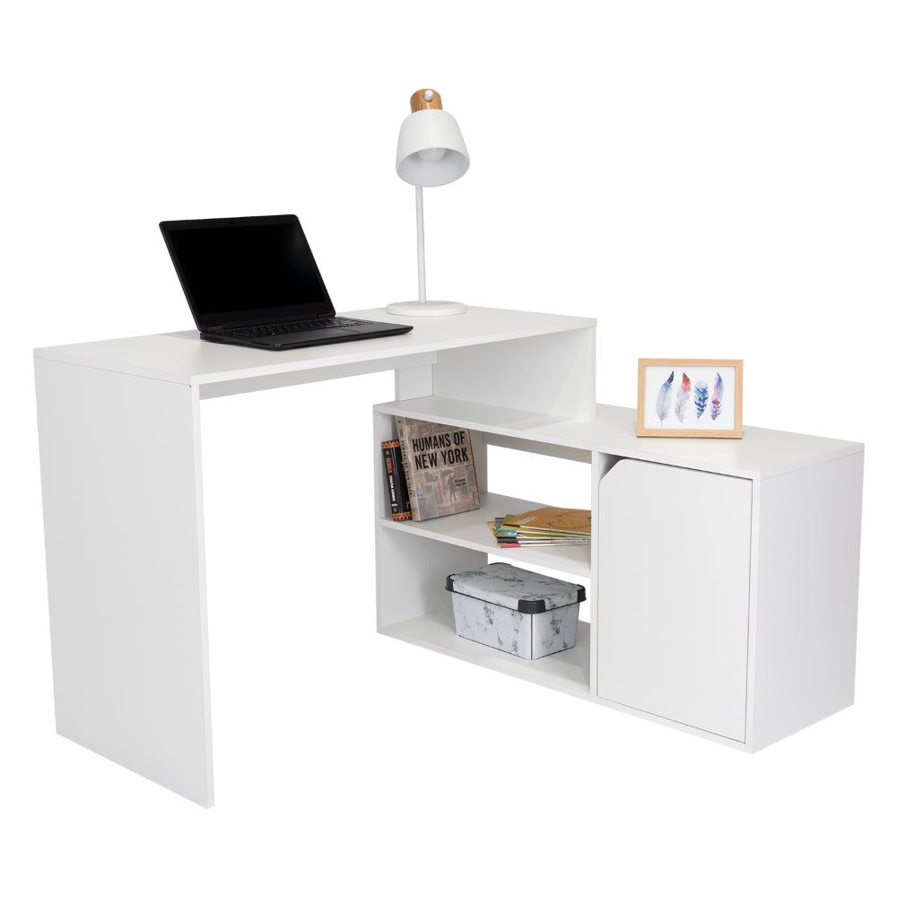 Escritorio En L Wuhan, Blanco, con Múltiples Entrepaños Para Ubicar Objetos y Una Puerta Abatible Cop