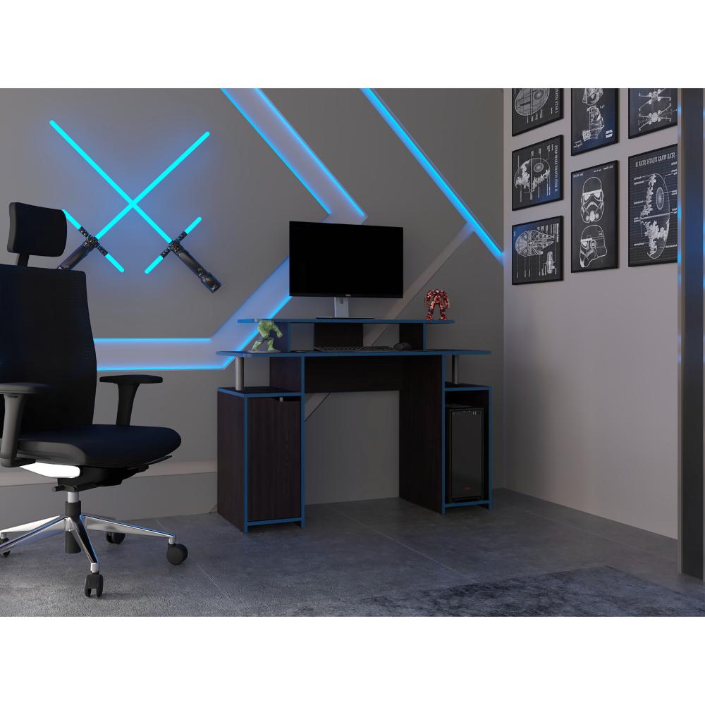 Escritorio Gamer Kein 2, Wengue y Azul, con Espacio Adicional para Pantallas ZF