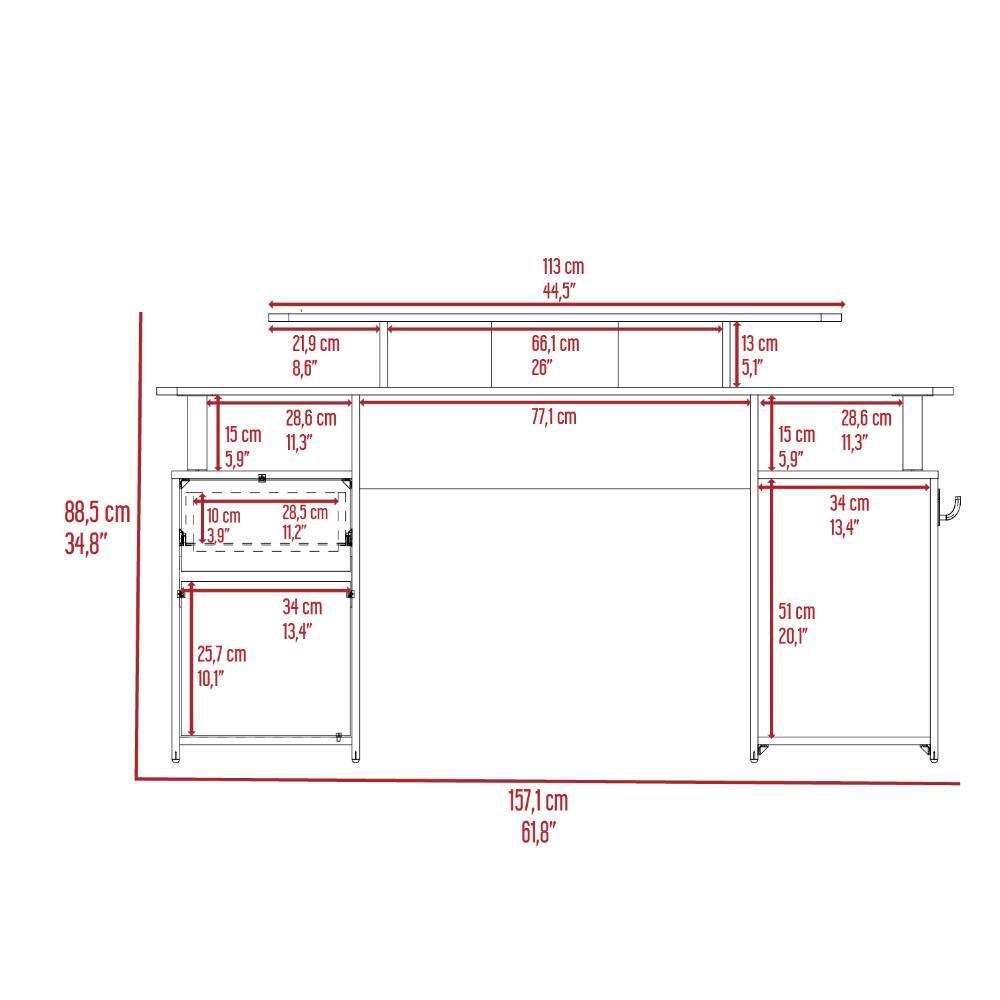 Escritorio Gamer, con espacio para diferentes equipos, borde Blanco y diseño moderno.