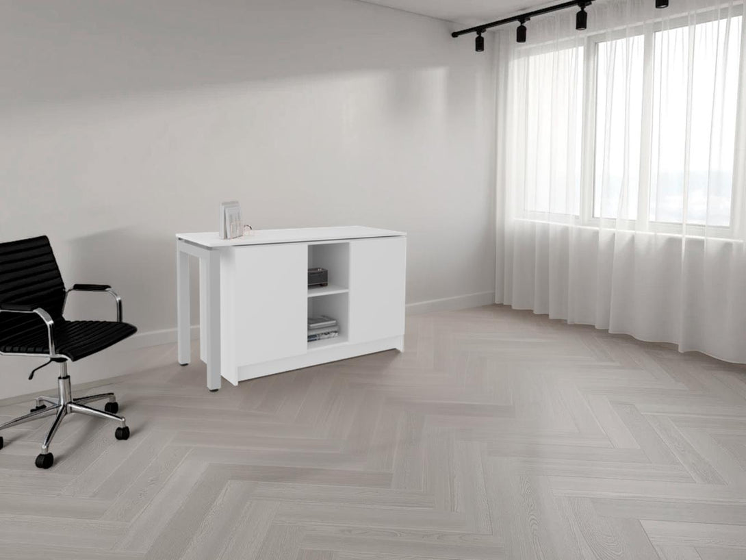 Escritorio, con 2 puertas abatibles, gran superficie de trabajo, multiples espacios para ubicar objeto.