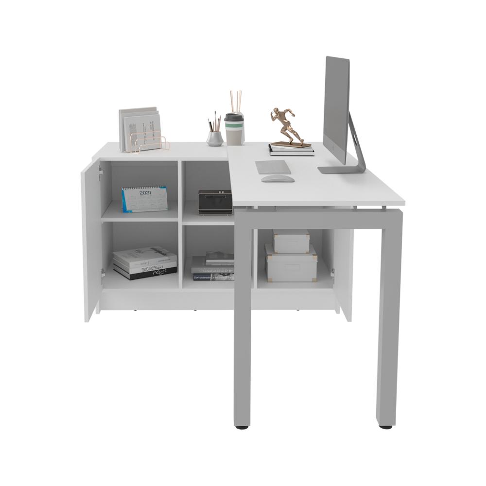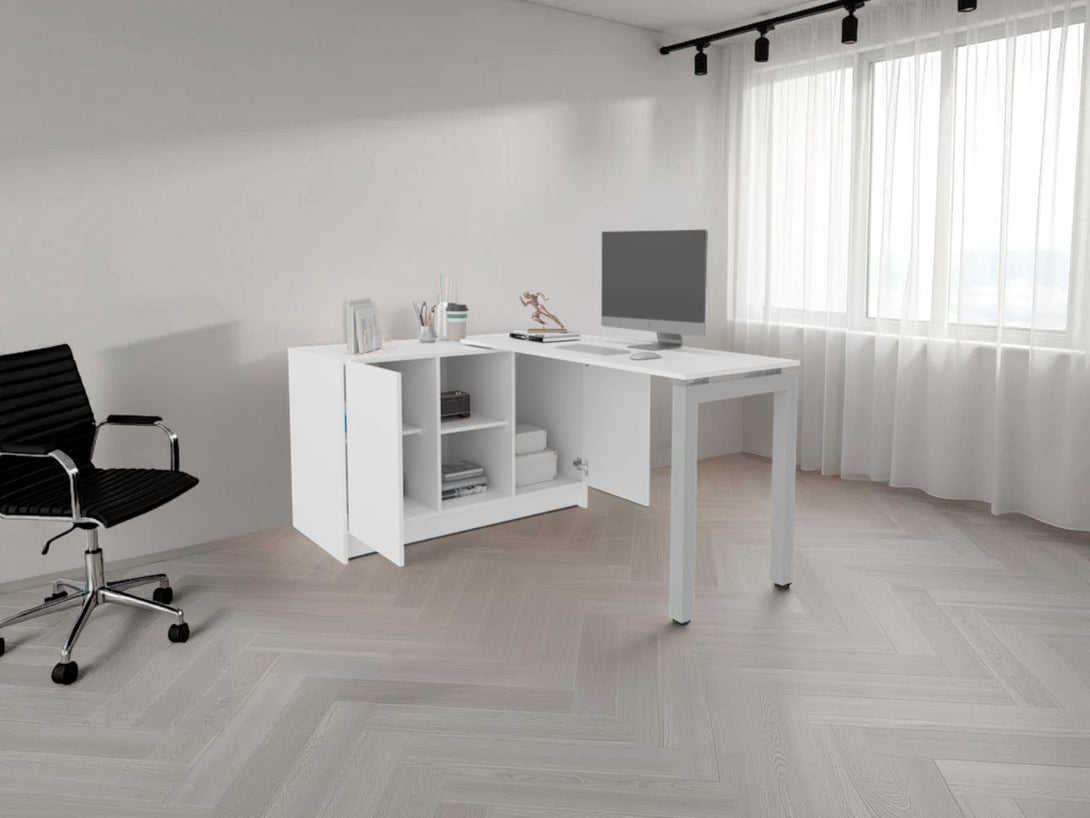 Escritorio Giratorio Alfie, Blanco Duqueza, con multiples espacios para ubicar objeto ZF