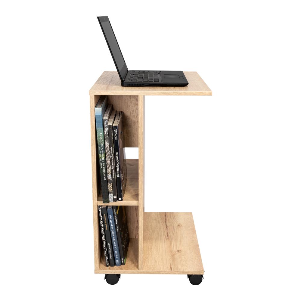 Escritorio Portable, con espacio para computadora portátil, rodachinas con freno y espacio para colocar libros y objetos decorativos.