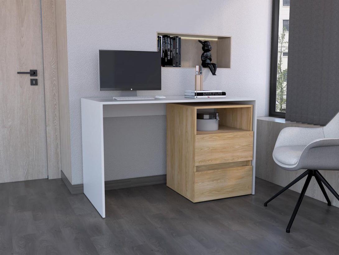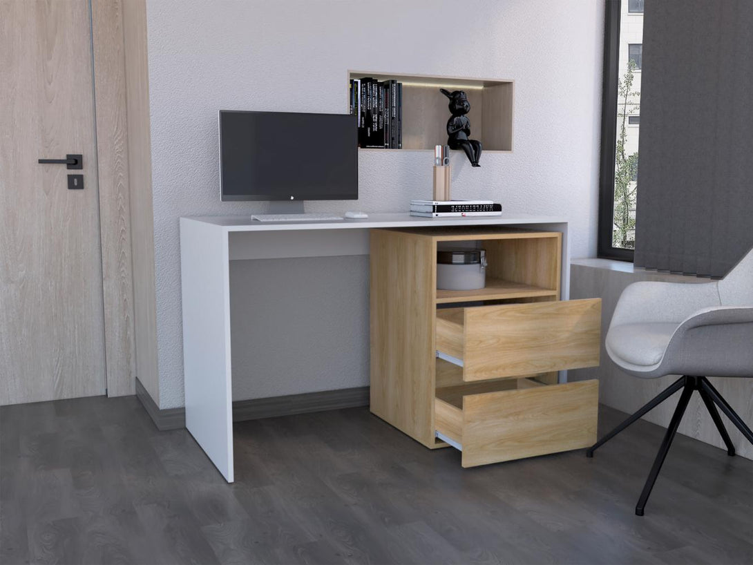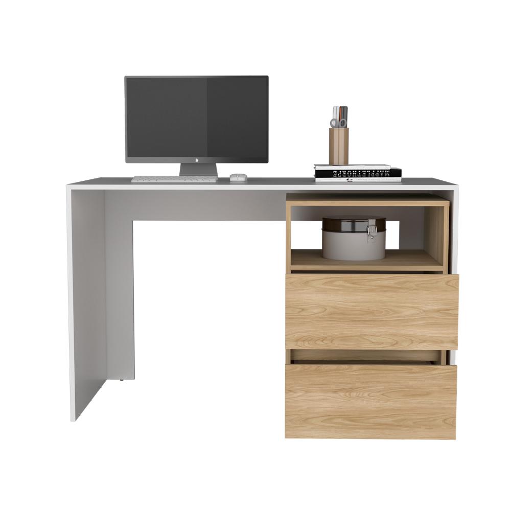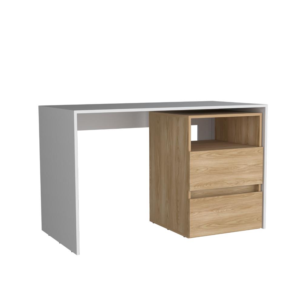 Escritorio Rook, Blanco y Fresno Europeo, con espacio para objetos decorativos ZF