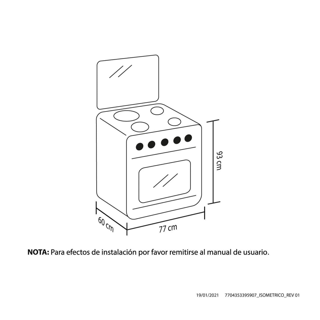 Estufa con gran espacio en mesa y horno para la preparación de todo tipo de recetas, cuenta con fogones potentes, horno de alta precisión, gratinador para recetas doradas y crocantes así como una práctica guía de recetas, cocinar será fácil y seguro, pues evita fugas de gas en el horno.