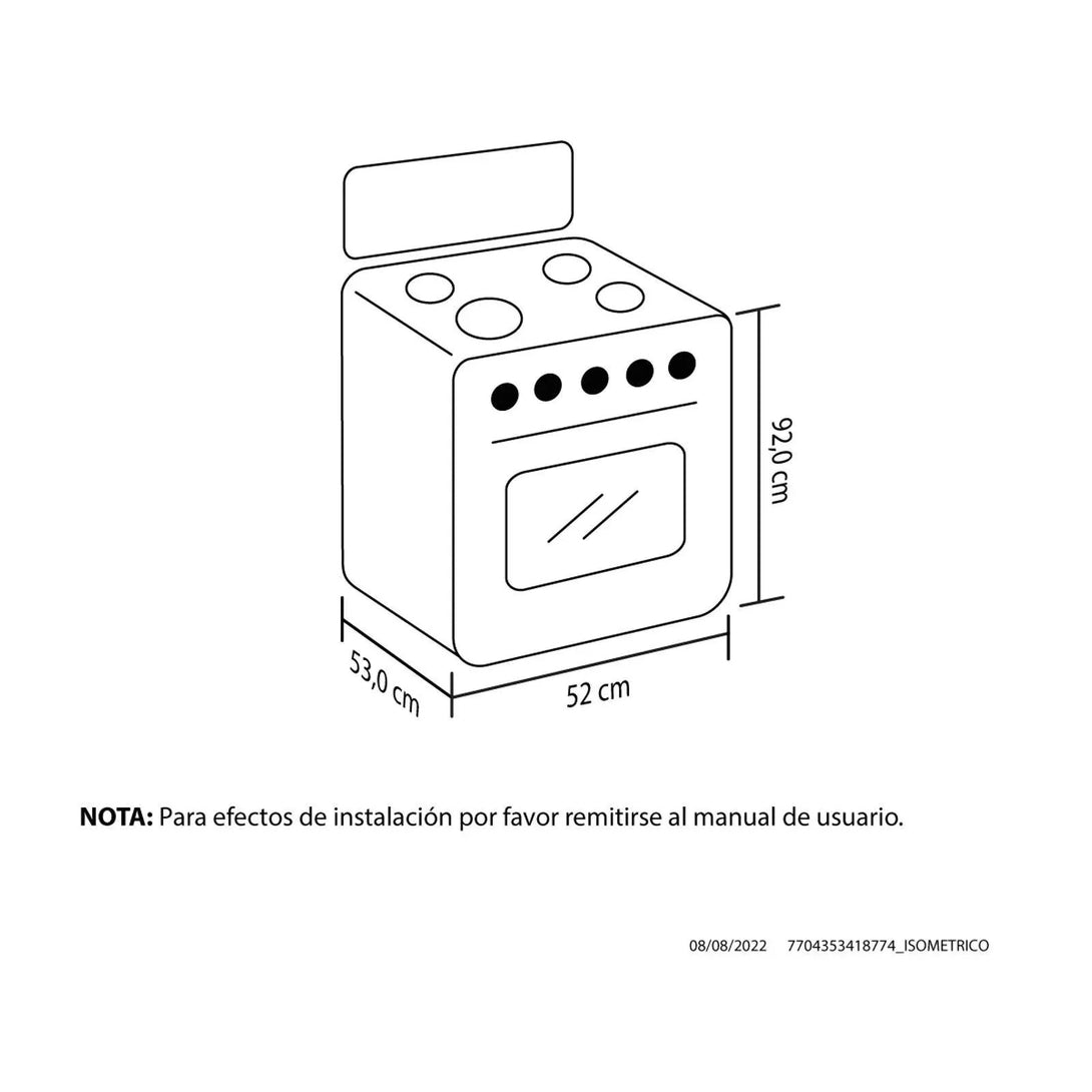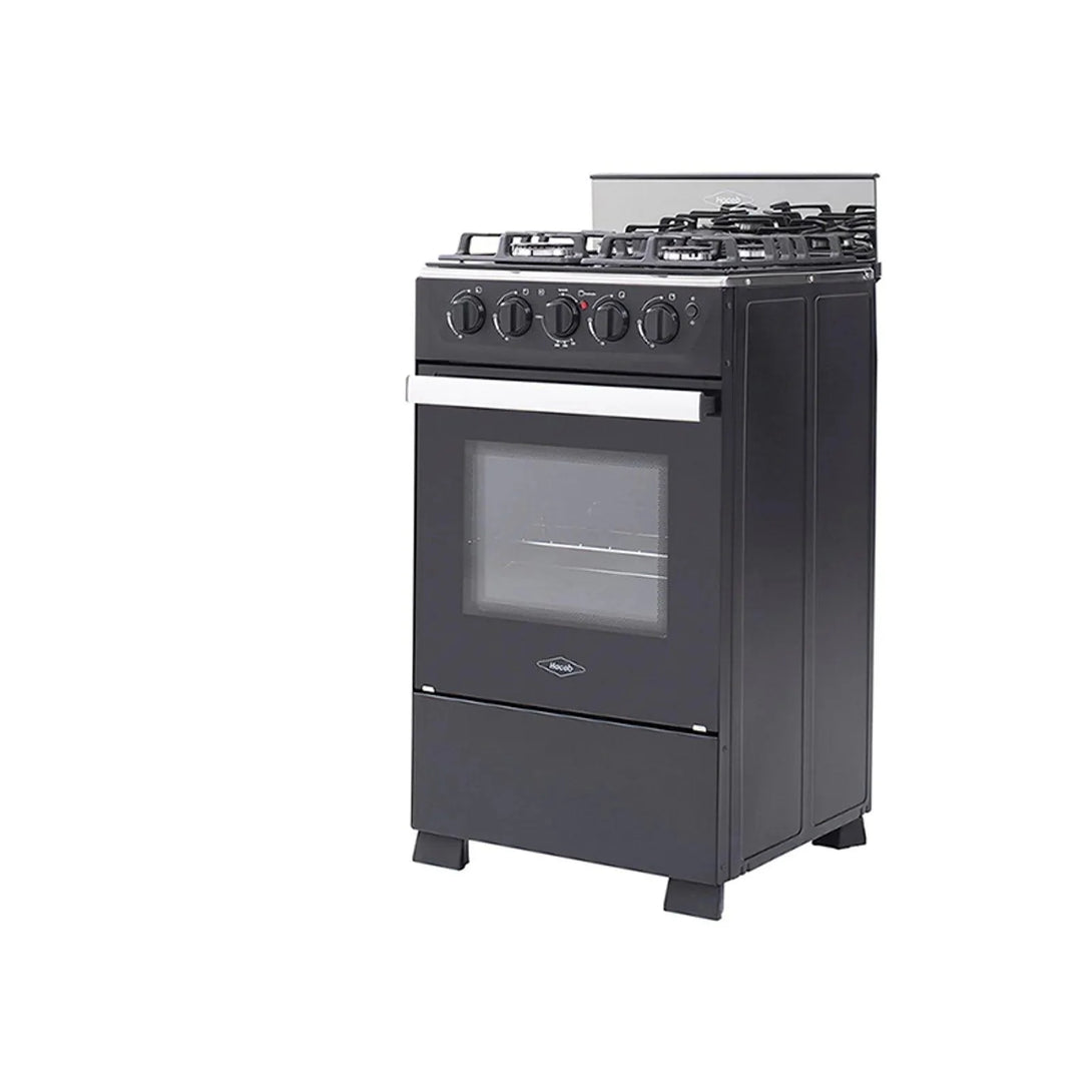 Estufa con mesa en cristal y acabados en negro que le dará un toque de elegancia a tu cocina, 50 cms de ancho, con puerta del horno con visor, parrillas en hierro fundido y fogones de diferentes tamaños. El horno ofrece un gran espacio interior y varios niveles de ubicación del entrepaño que además es retráctil para que cocines lo que quieras y des el toque dorado al final usando el gratinador eléctrico