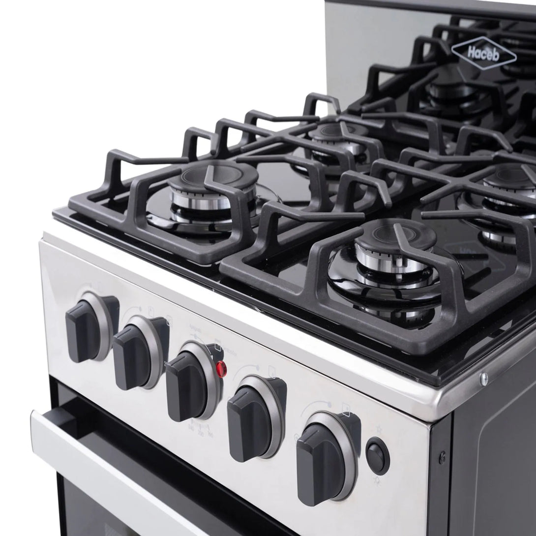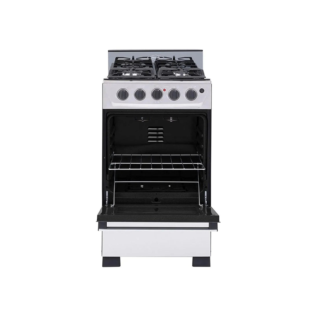 Estufa con mesa en cristal y acabados brillantes que hará lucir tus espacios amplios, 50 cms de ancho, con puerta del horno con visor, parrillas en hierro fundido y fogones de diferentes tamaños. El horno ofrece un gran espacio interior y varios niveles de ubicación del entrepaño que además es retráctil para que cocines lo que quieras y des el toque dorado al final usando el gratinador eléctrico