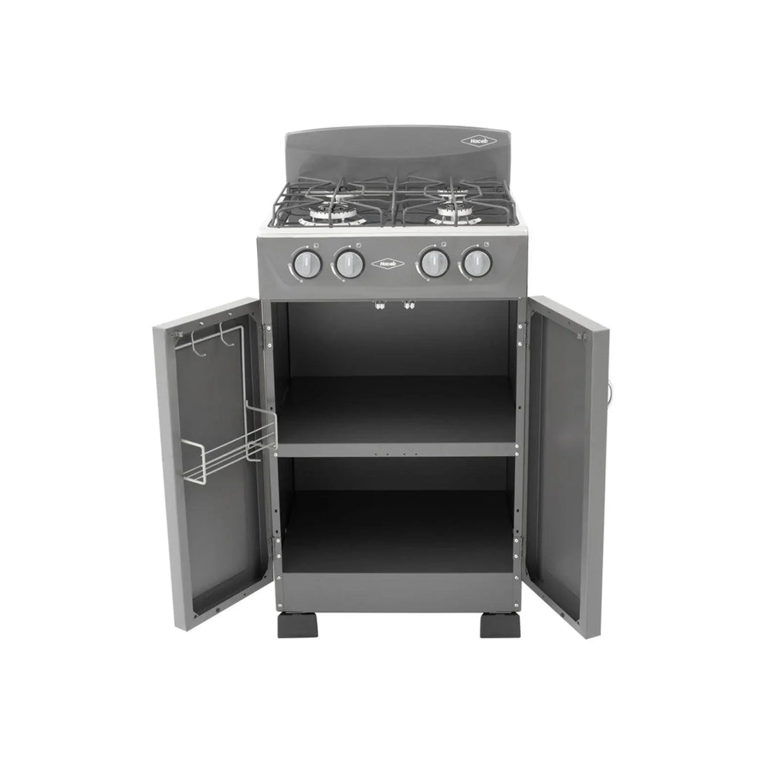 La estufa que se complementa con tus utensilios en su práctico compartimento multiusos, cocina las mejores preparaciones en sus diferentes tamaños de quemadores garantizando la seguridad y limpieza de tus espacios con el espaldar en torre.