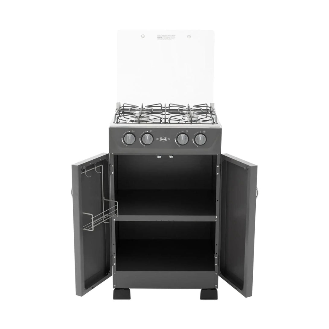 La estufa que interactúa con tus ingredientes, guárdalos en el amplio gabinete multiusos. Adapta tus ollas en los diferentes quemadores, sin importar el volumen gracias a su mesa en acero y garantiza la limpieza de tus espacios con el espaldar en vidrio.