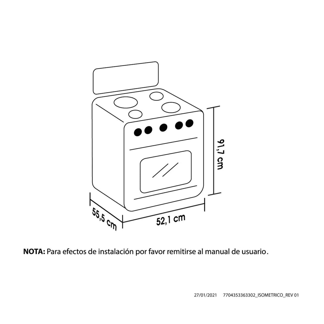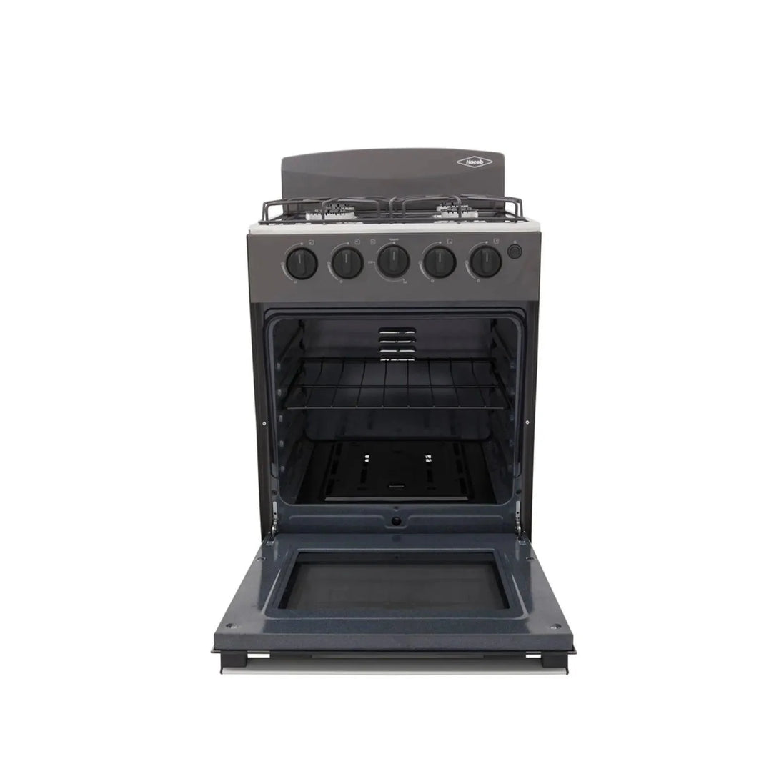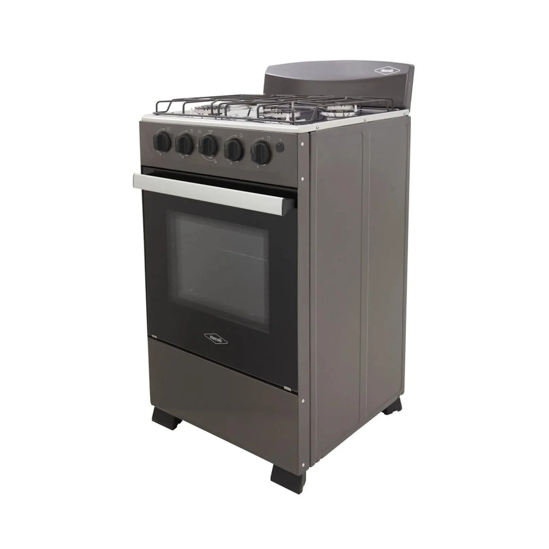 Estufa Haceb de 50 cms de ancho con mesa en acero inoxidable y encendido eléctrico, color plata. Con cuatro fogones de diferentes tamaños para versatilidad en la cocción, parrilla contínua antideslizante que da estabilidad a los recipientes y horno de gran capacidad con visor amplio para hacer seguimiento a sus recetas. Además, el respaldo único de servicio Haceb.