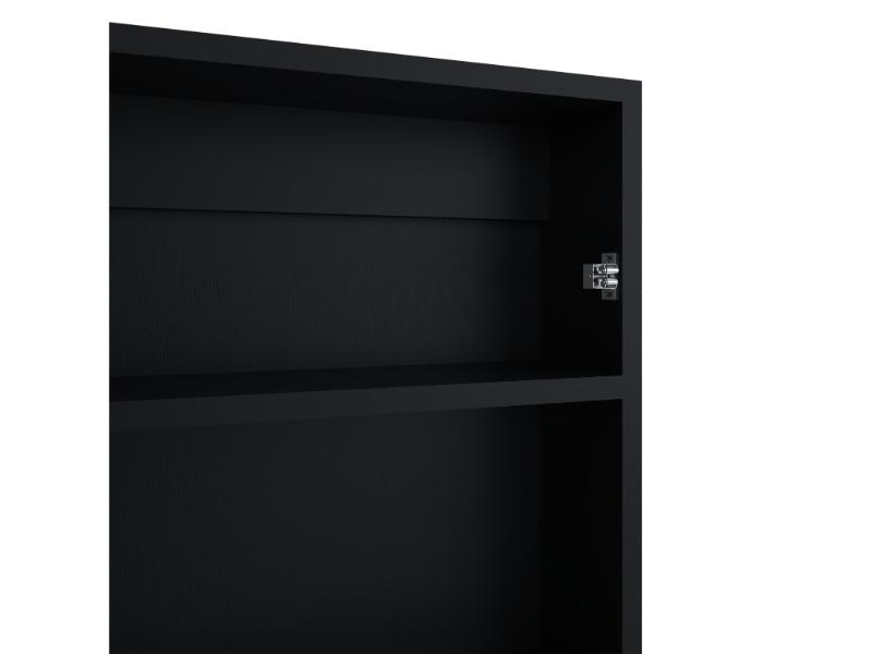 Elaborado en Madera aglomerada MDP, recubierta con láminas melamínicas de excelente calidad, en color Wengue.