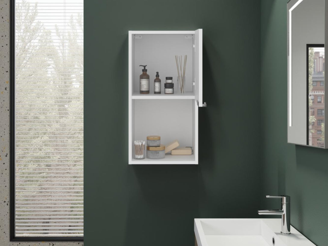 Gabinete de Baño Kase, Kronos Blanco, con una puerta abatible con manija metalica ZF