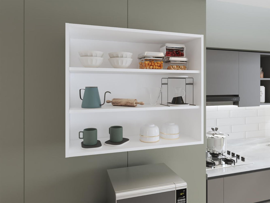 Gabinete de Baño Saray, Blanco Duqueza, con tres entrepaños