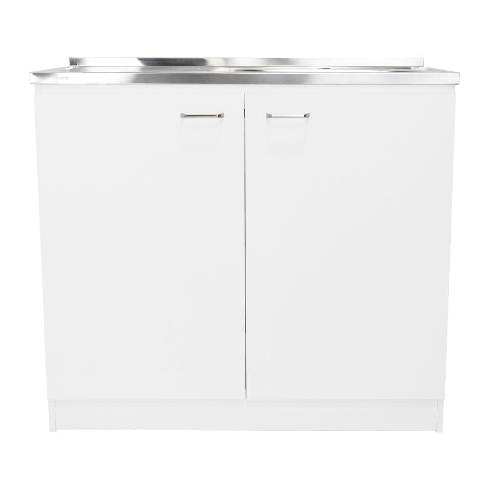 Gabinete Inferior, con amplio espacio para guardar utensilios de cocina, 2 puertas batientes, manijas metálicas. Incluye mesón derecho.