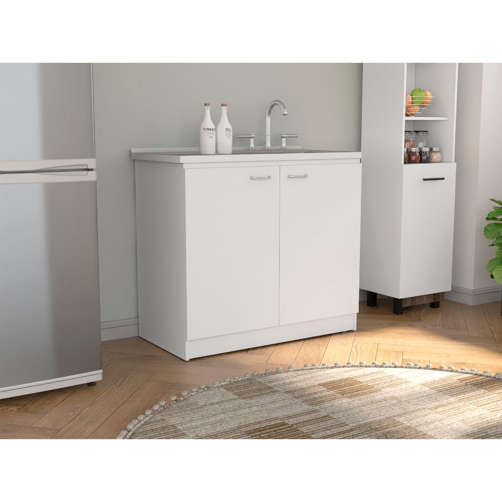 Gabinete Inferior Cantabria, Blanco, con Dos Puertas Abatibles y Mesón derecho ZF