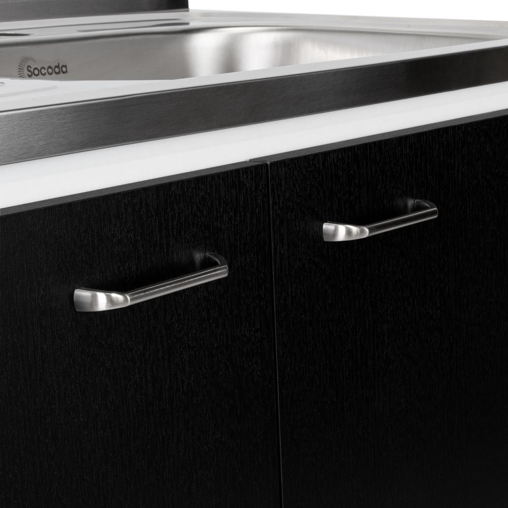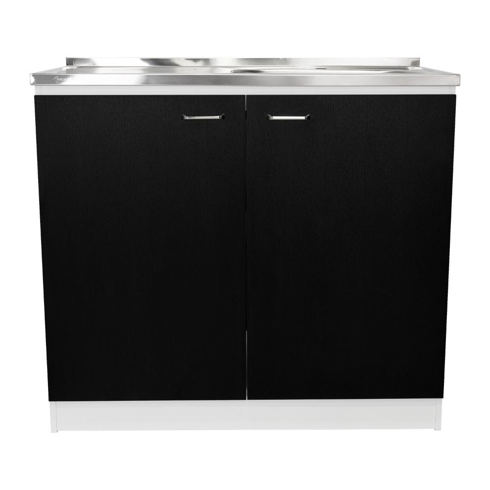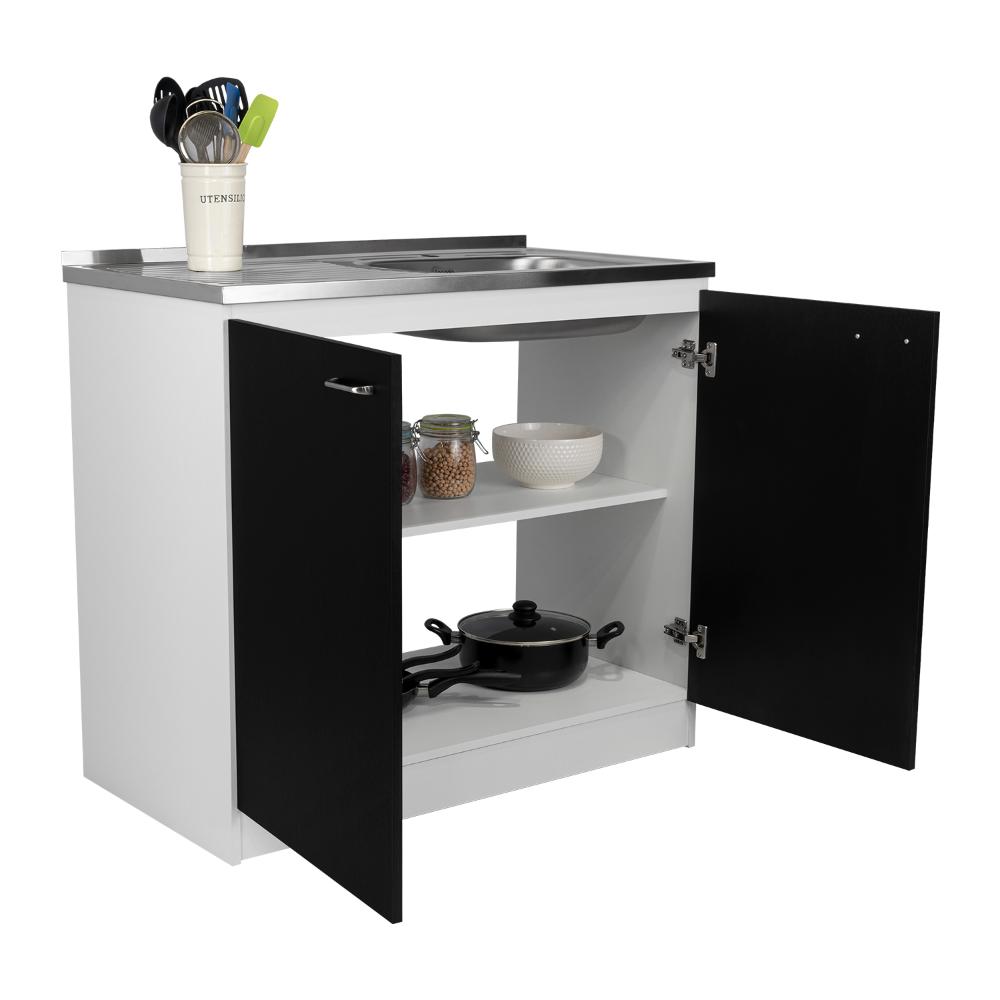 Gabinete Inferior, con amplio espacio para guardar utensilios de cocina, 2 puertas batientes, manijas metálicas.
