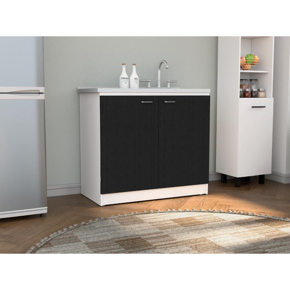 Gabinete Inferior Cantabria, Wengue y Blanco, Ideal Para Espacio Reducidos