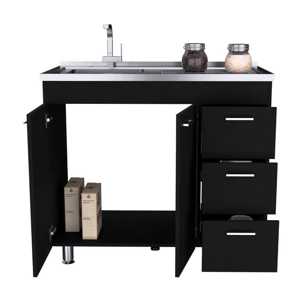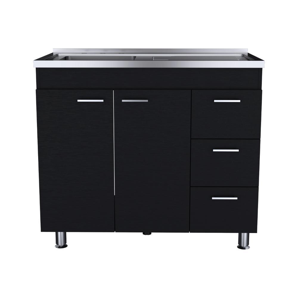 Gabinete Inferior Stella, Wengue, con Dos Puertas Batientes y Tres Cajones Deslizables, con Mesón Izquierdo