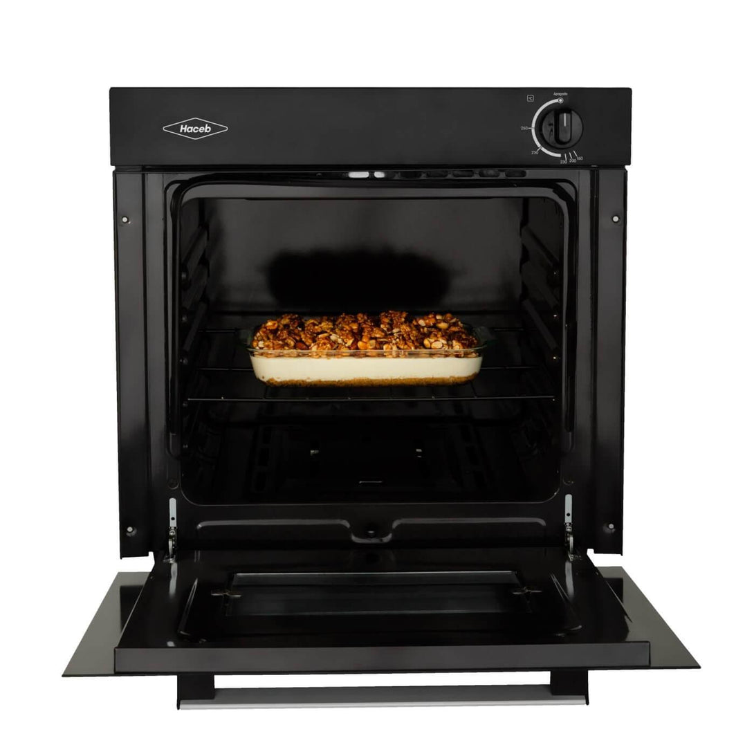 Horno a gas en Cristal negro de 60 cm de ancho con doble vidrio para alta seguridad, alta precisión en la temperatura que requieres para tus preparaciones. Gran espacio interior con diferentes posiciones para ubicar las recetas; además cuenta con luz interior para hacer seguimiento al proceso de cocción. Es de fácil mantenimiento y limpieza.