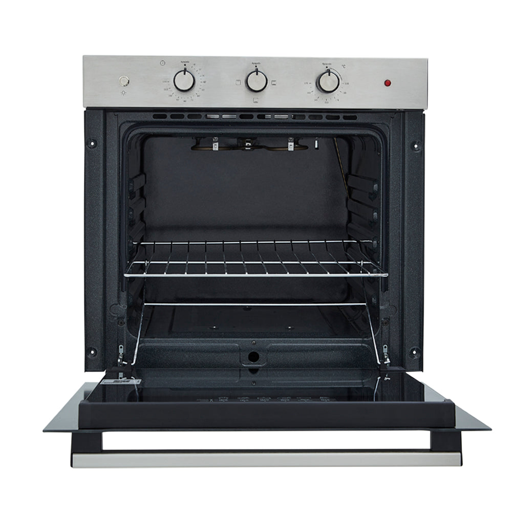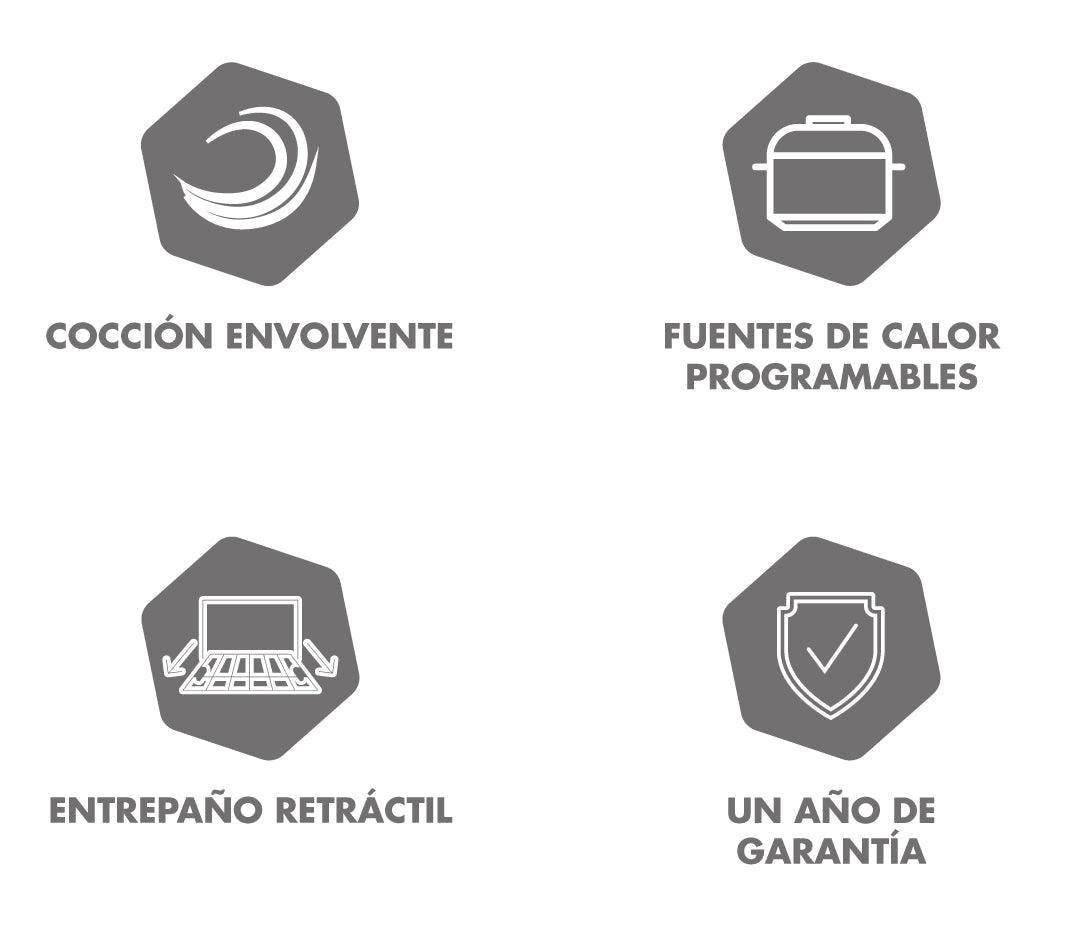 Horno eléctrico de 60 cm de ancho con tres tipos de programación de calor; gratinador eléctrico en curvas que dará un toque crujiente y dorado a las recetas. Cuenta con tecnología de cocción envolvente para acabados homogéneos, entrepaño retráctil que te acerca las recetas al abrir el horno brindándote practicidad y seguridad y tecnología Low E que garantiza baja emisividad de calor hacia el exterior. El horno tiene un amplio espectro visual e iluminación interna para hacer seguimiento a tus recetas. Para complementar, la limpieza será un proceso fácil gracias a las superficies con pocas porosidades, el vidrio extraíble y la puerta desmontable. Línea de cocinas Haceb; recetas deliciosas, en su punto y en menos tiempo.