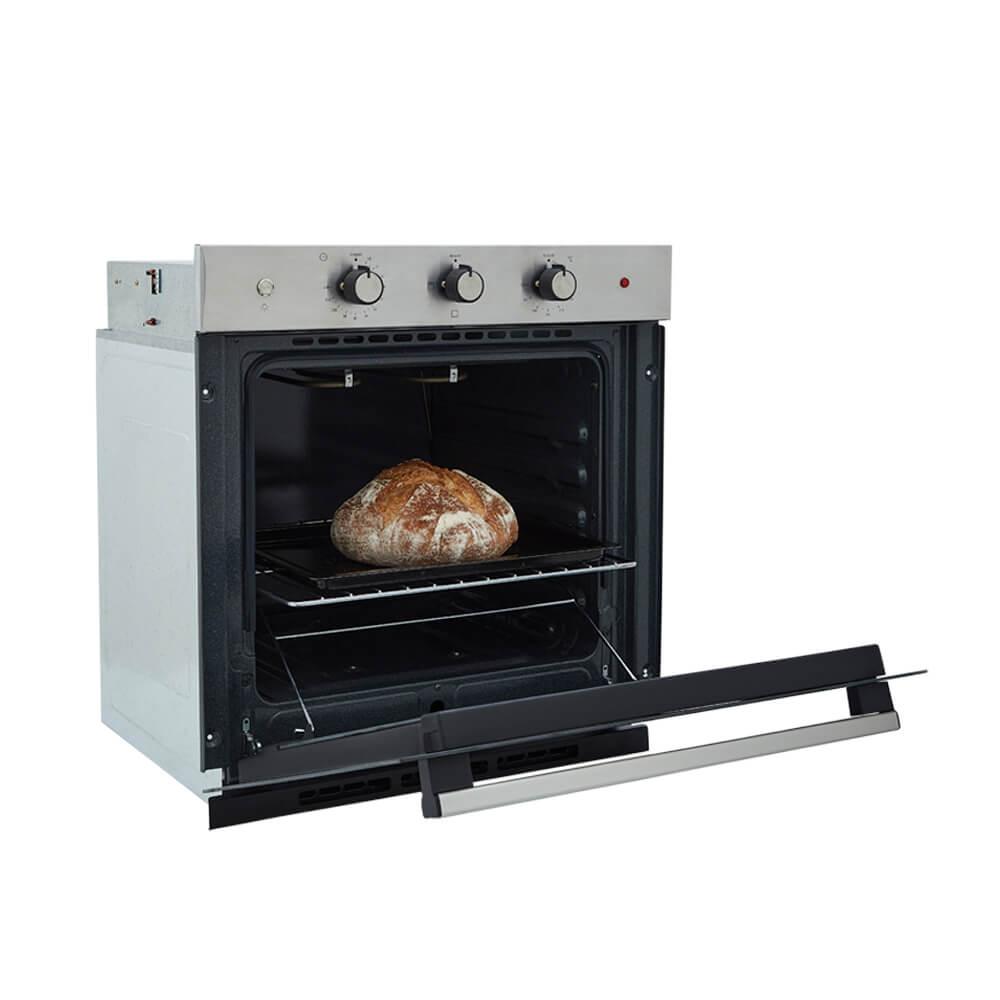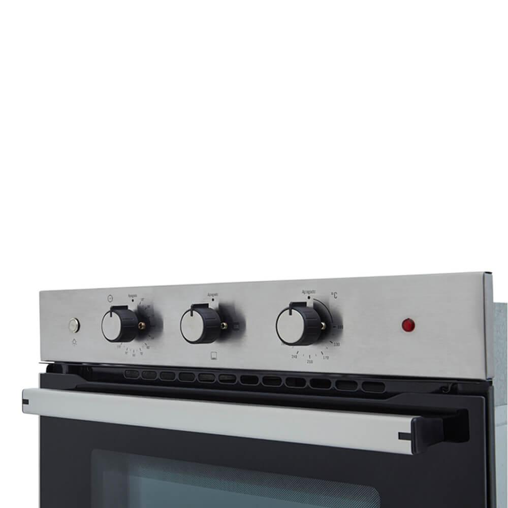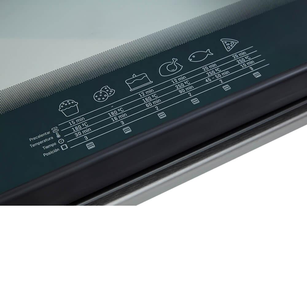 Horno eléctrico de 60 cm de ancho con tres tipos de programación de calor; gratinador eléctrico en curvas que dará un toque crujiente y dorado a las recetas. Cuenta con tecnología de cocción envolvente para acabados homogéneos, entrepaño retráctil que te acerca las recetas al abrir el horno brindándote practicidad y seguridad y tecnología Low E que garantiza baja emisividad de calor hacia el exterior. El horno tiene un amplio espectro visual e iluminación interna para hacer seguimiento a tus recetas. Para complementar, la limpieza será un proceso fácil gracias a las superficies con pocas porosidades, el vidrio extraíble y la puerta desmontable. Línea de cocinas Haceb; recetas deliciosas, en su punto y en menos tiempo.