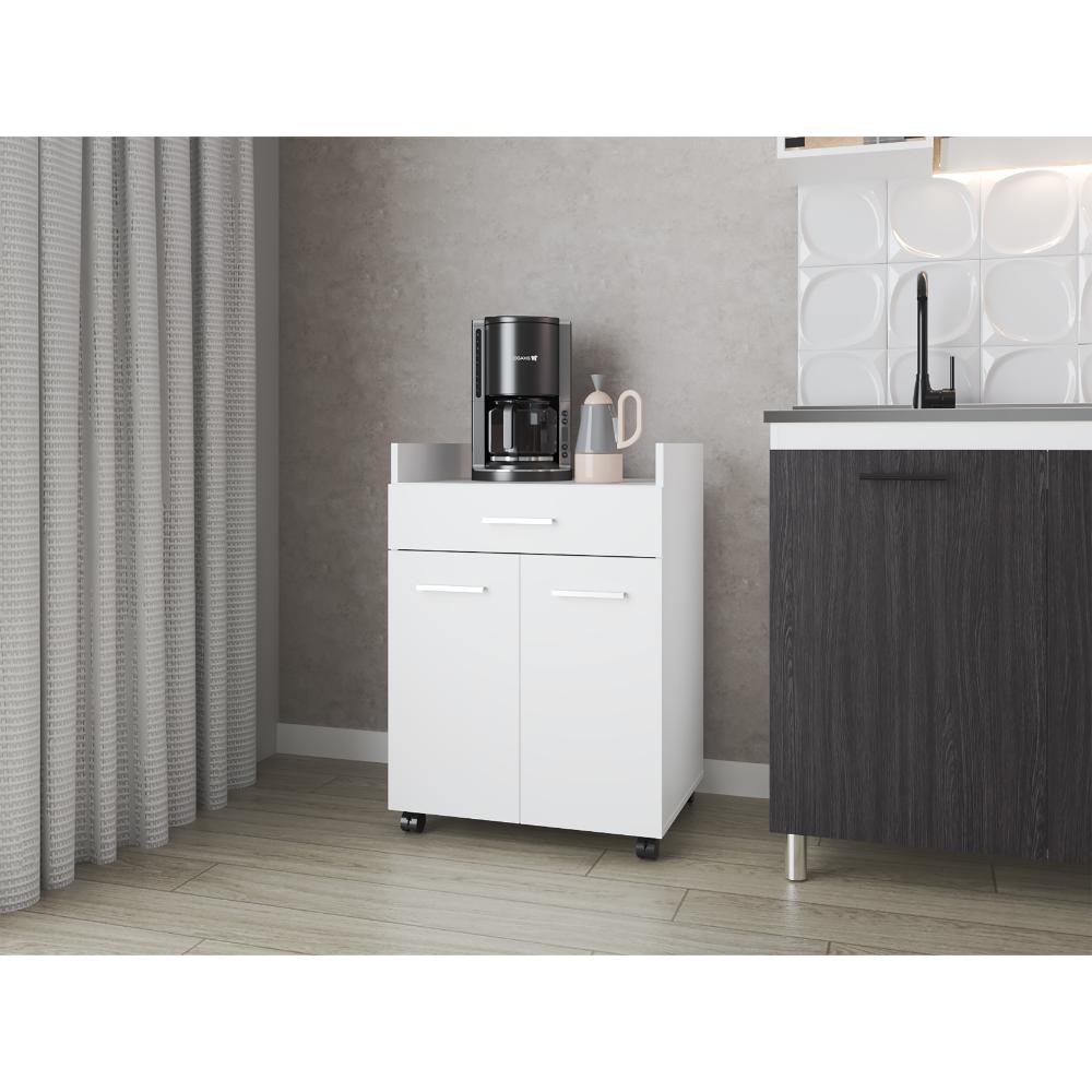 Mesa Auxiliar de Cocina Glover, Blanco Duqueza, con rodachina ZF