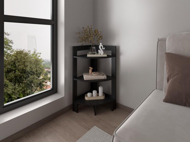 Mesa Auxiliar Esquinera, con tres entrepaños para ubicar objetos decorativos.